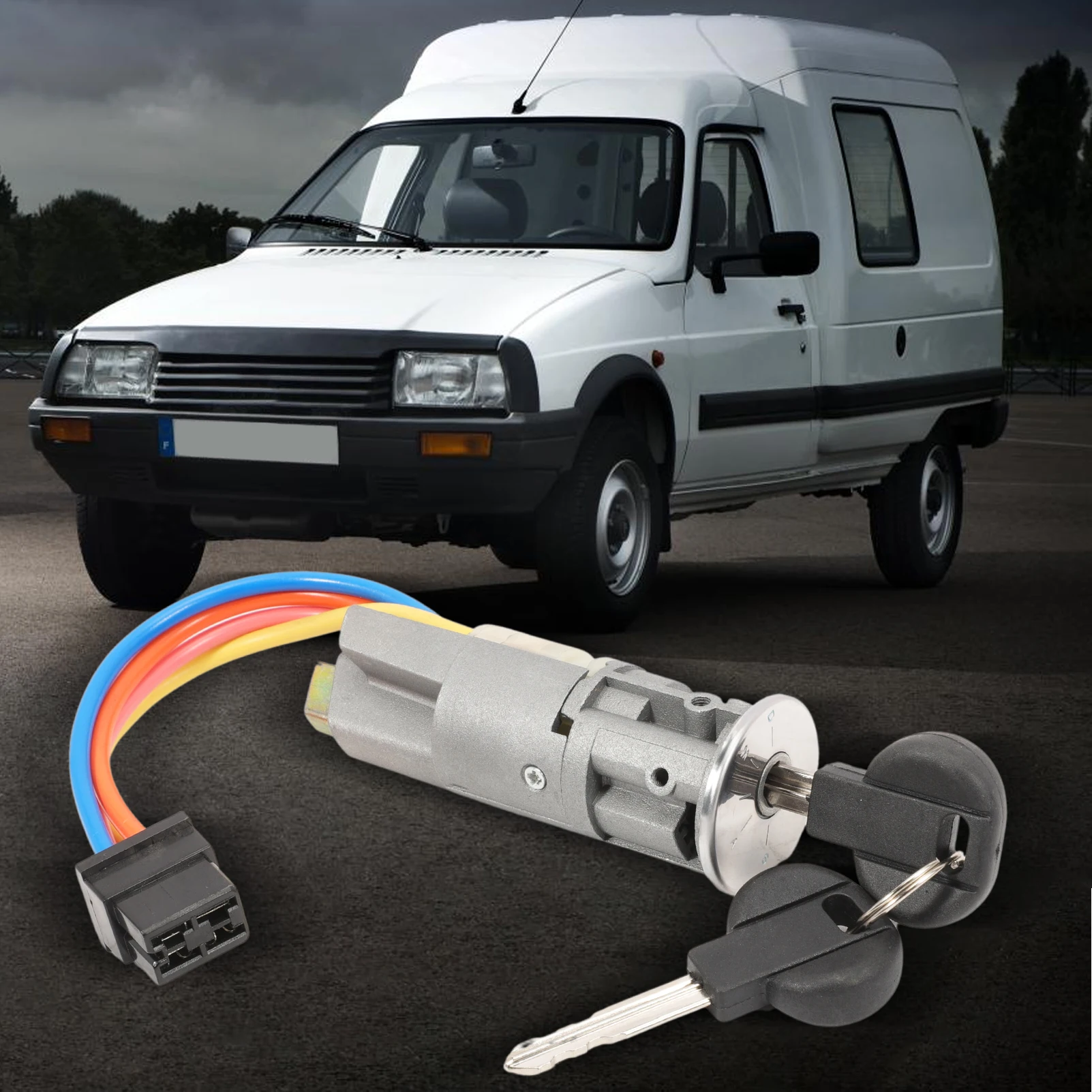 Drive with confidence knowing you’ve secured your Citroen C15 effortlessly with this high-quality cylinder lock starter. Designed specifically for models from 1984 to 2005, this part ensures a precise fit and reliable performance. Its polished, metallic finish combines durability with a sleek, industrial aesthetic. The lock features engraved markings on the round tip, adding a subtle technical touch, while the accompanying black plastic electrical connector and vibrant wires (yellow, red, blue, orange) offer a striking contrast. Easy to install, it seamlessly replaces your existing lock, restoring your vehicle’s security and peace of mind. Whether for repairs or replacements, this product is built to meet your needs reliably and efficiently.