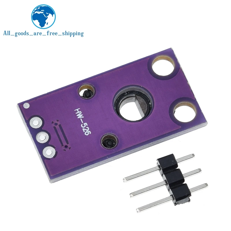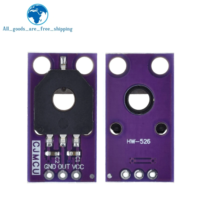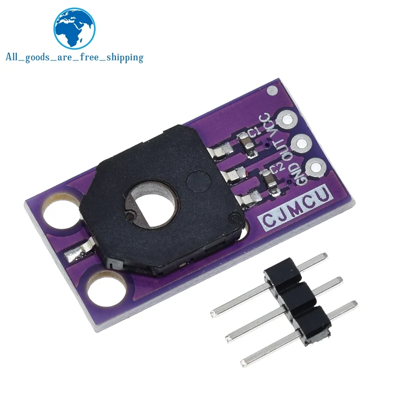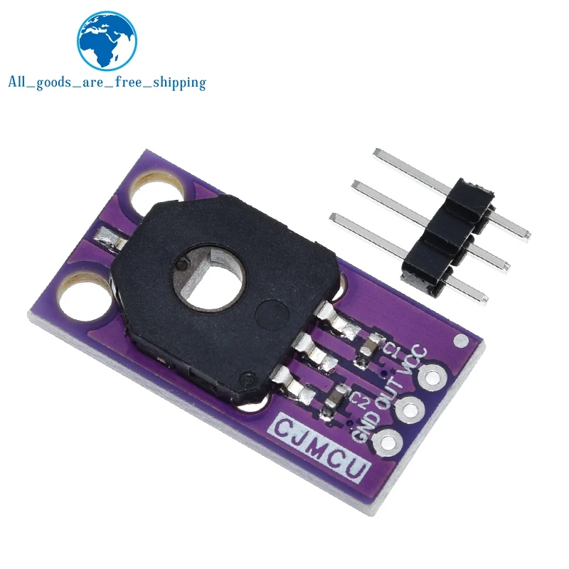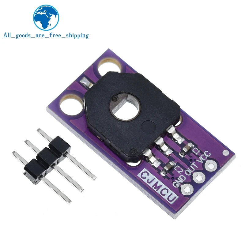 - Dust-proof design with a compact purple PCB for durability and aesthetic appeal. Its circular, matte black sensor module includes a central hole for precise angle sensing. Compatible with various DIY projects.