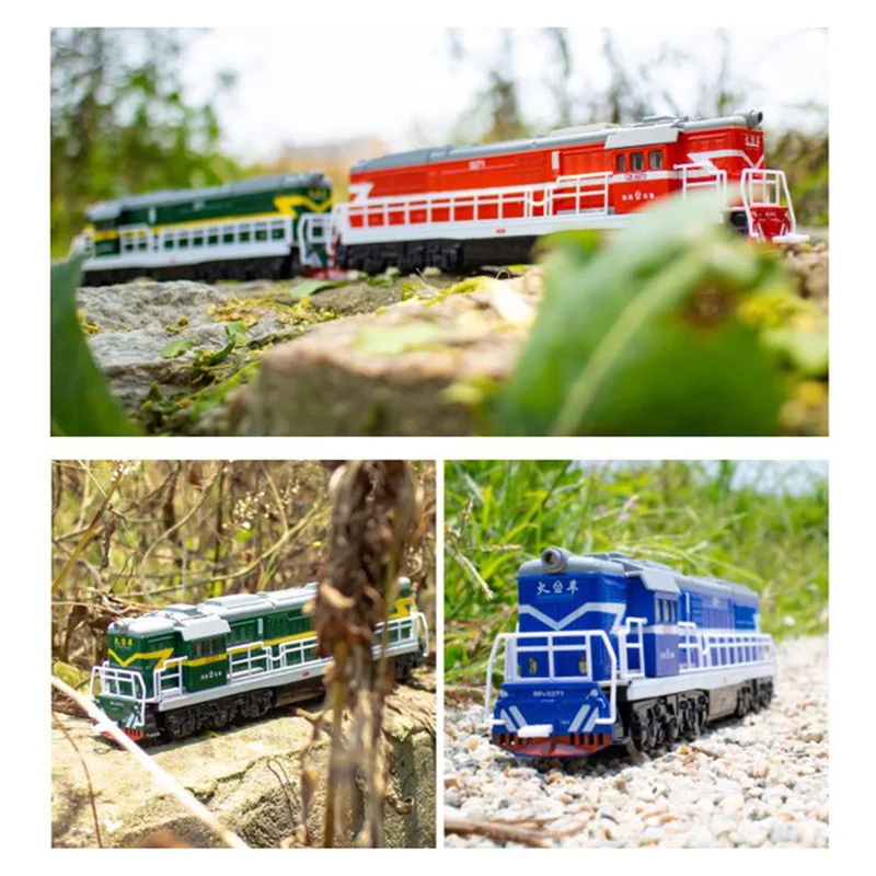 Imagine bringing the excitement of a miniature train world to life with this classic train alloy model. Each train, designed in a 1:87 scale, showcases vibrant colors like blue, green, and red, adorned with intricate details. At approximately 26 cm long, 4.5 cm wide, and 6 cm high, these models are crafted from durable zinc alloy, plastic, and rubber. They feature engaging sound and light functionalities, enhancing your playtime experience. Not requiring batteries, they are easy to operate and perfect for both collectors and imaginative play. Picture these trains racing along tracks, stirring up joy and nostalgia.