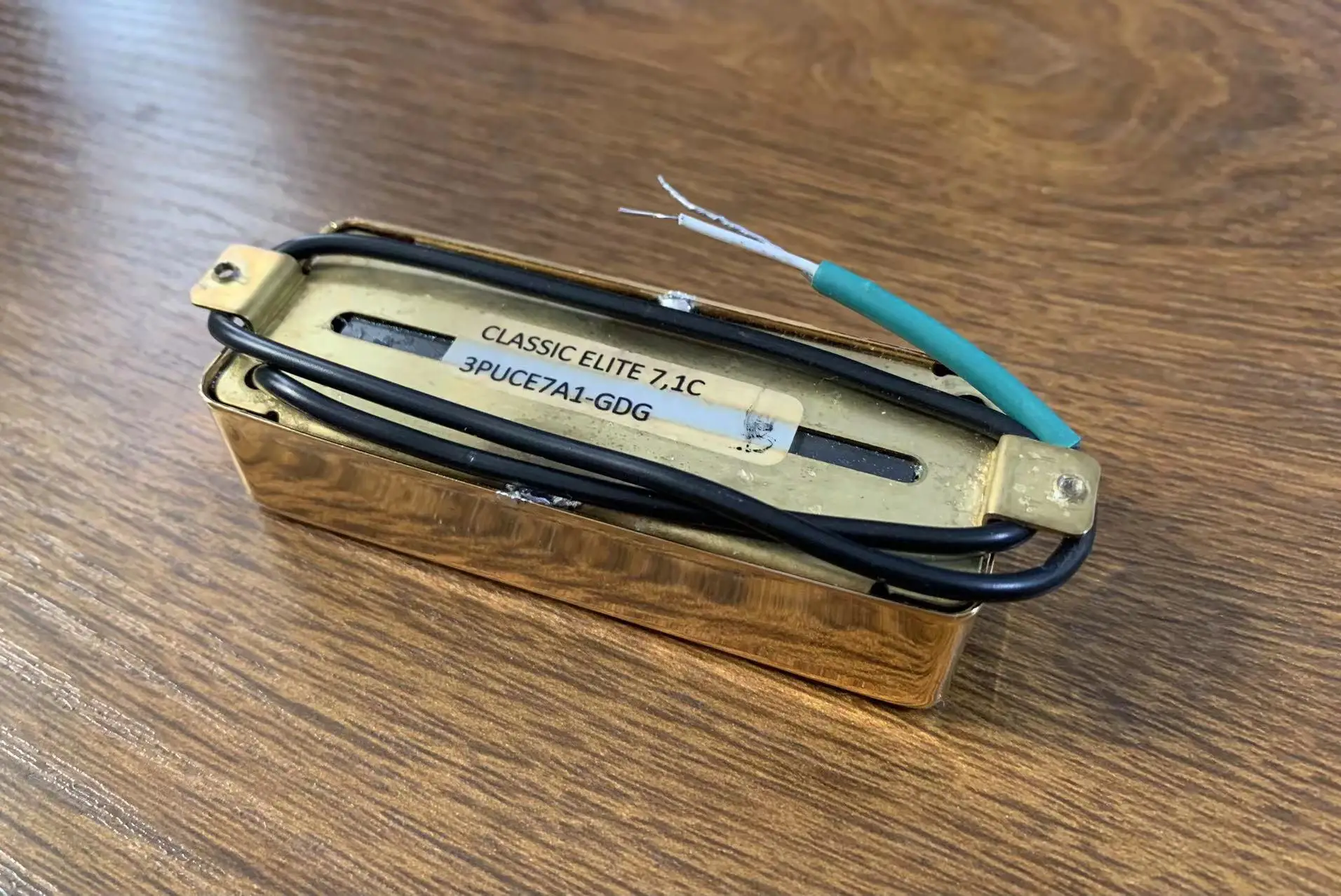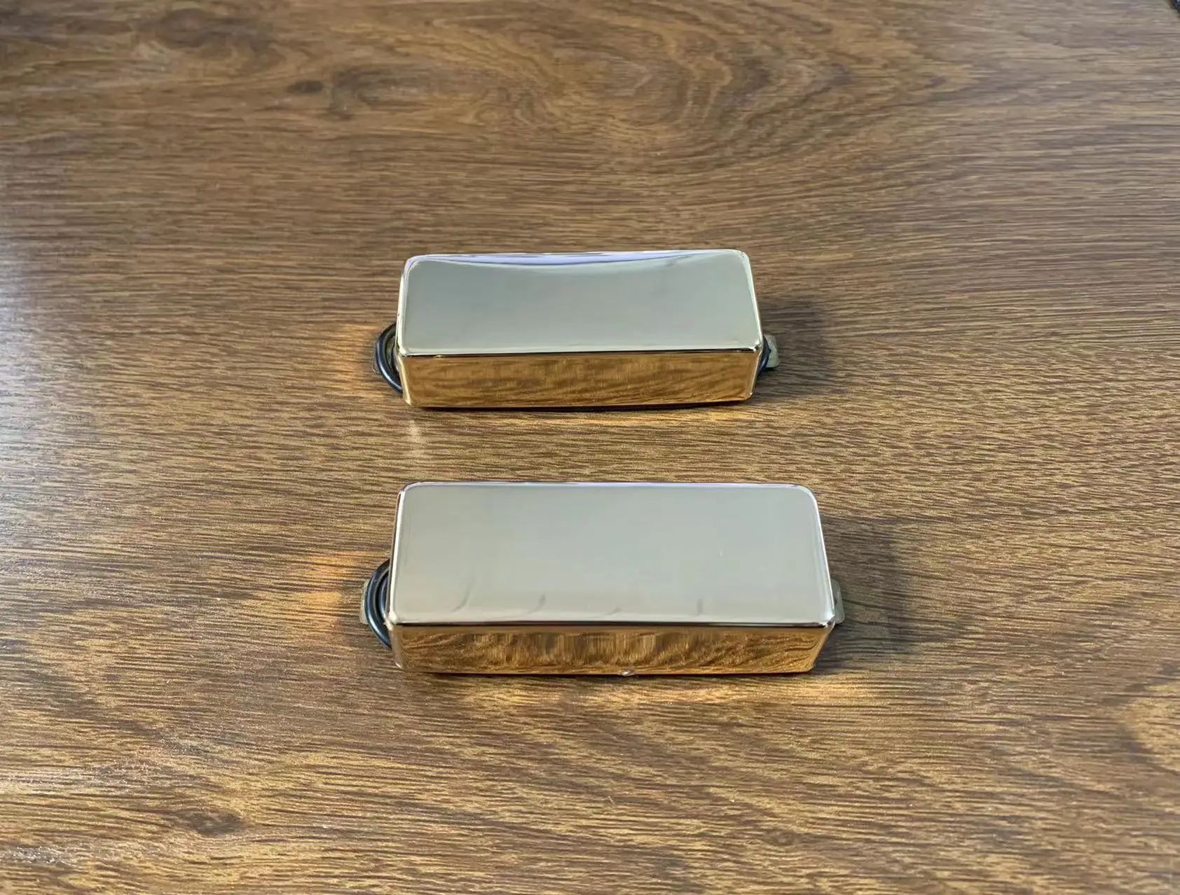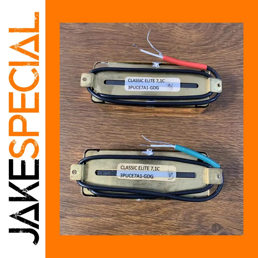 Enhance your bass guitar with this set of Classic Elite pickups, precisely crafted for 4-string electric bass models. Made in Korea, these pickups feature a sleek rectangular design with a warm, goldish metallic finish, and measure 1.88″ between screw holes, 1.68″ in width, and 0.4″ thick. The centered horizontal slot adds functional elegance, while the black wires provide a sharp contrast to the polished casing. Designed for durability and optimal performance, these pickups are perfect for upgrading or replacing your existing hardware. Their simple yet professional aesthetic makes them an excellent choice for achieving a clear, powerful tone in your bass playing.