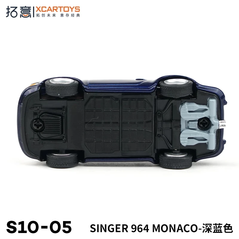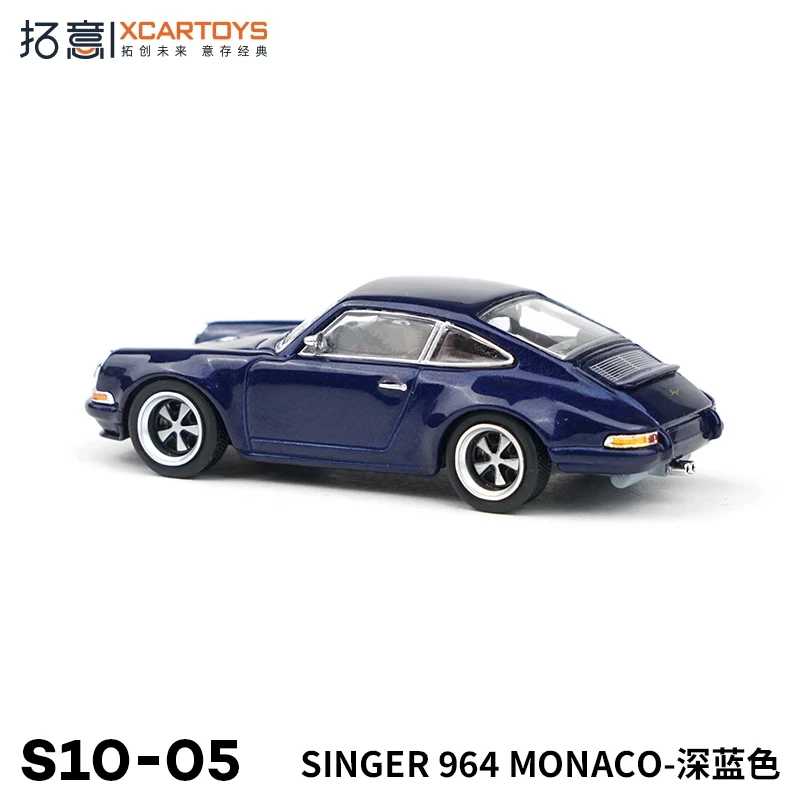 Imagine enhancing your collection with this meticulously crafted 1:64 scale die-cast car. The sleek, rounded aerodynamic design captures the vintage charm of classic sports cars like the Porsche 911, offering a refined and sophisticated appearance. The stunning deep navy blue finish is glossy and smooth, highlighting the elegant contours and subtle sculpted lines, including a central hood bulge and delicate body panels. Realistic features such as prominent round headlights with tinted lenses, amber turn signals, clear windows revealing an interior, and shiny chrome side mirrors make this model a standout piece. The sporty five-spoke wheels with textured black tires and contrasting silver rims add to its authenticity. Whether displayed or gifted, this model offers timeless appeal and exquisite detail to any enthusiast's collection.