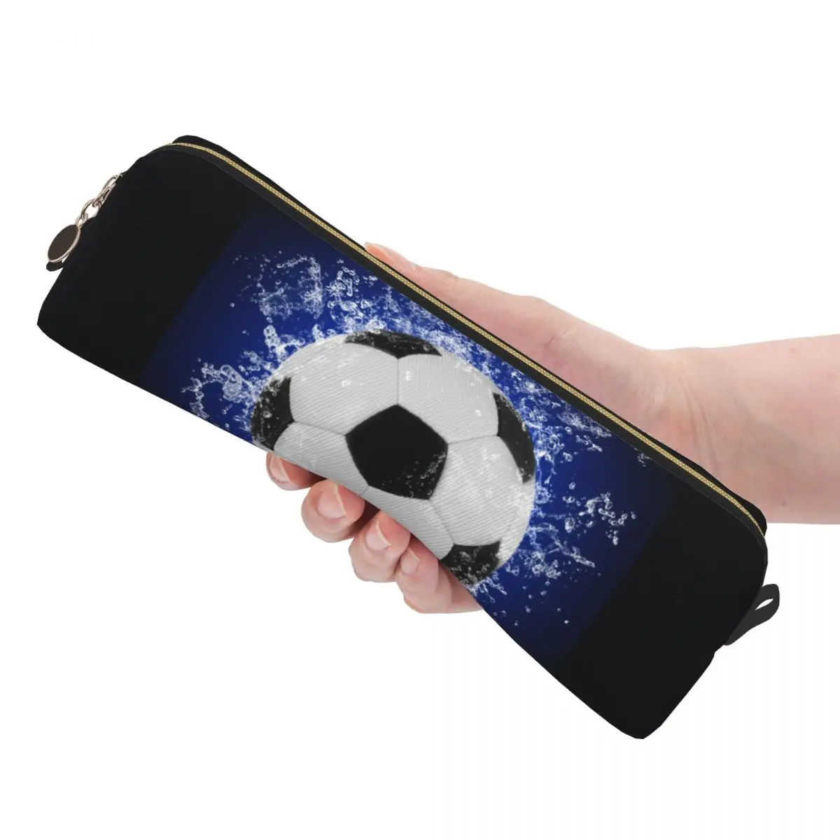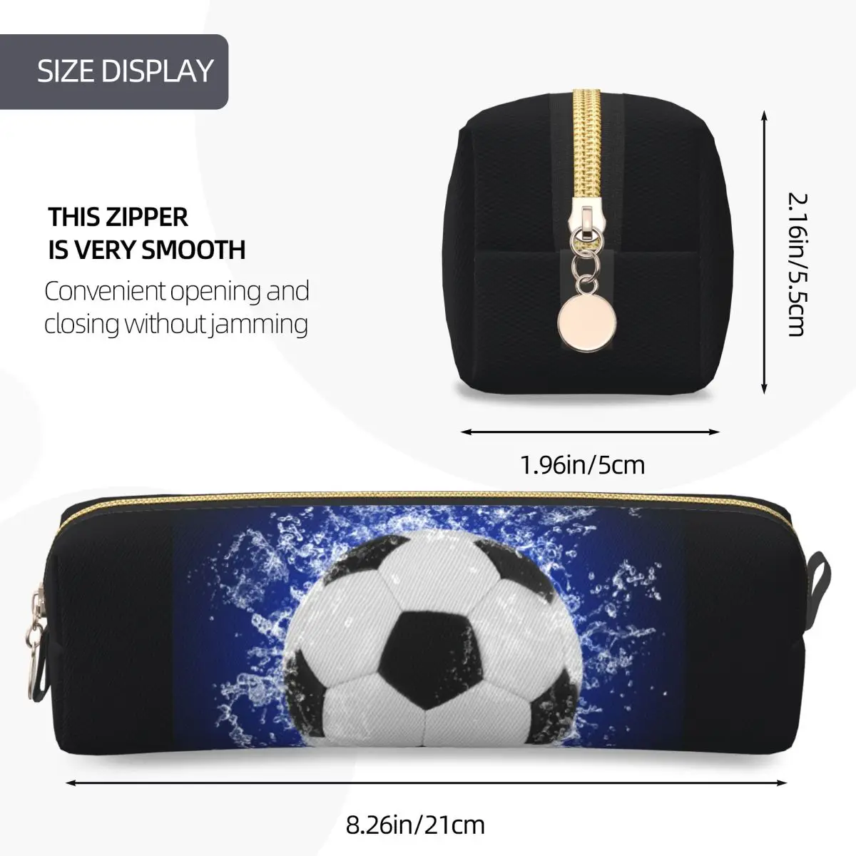 This Classic Soccer Sports Pencil Case is the perfect blend of style and functionality. Designed with a vibrant soccer theme, it features a striking graphic of a black and white soccer ball splashing through water against a rich blue background. The leather construction provides a smooth texture and durability, making it suitable for daily school and office use. With a rectangular shape and a large storage capacity, this pencil case can easily hold all your stationery essentials. The elegant gold zipper and metal pull tab add both practicality and sophistication, ensuring you can access your supplies with ease. This pencil case is a must-have for any soccer enthusiast!