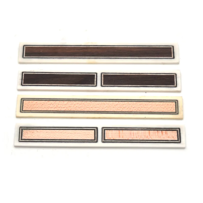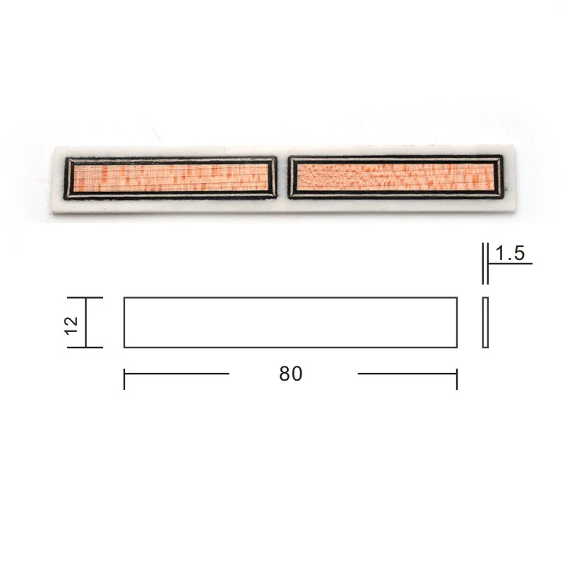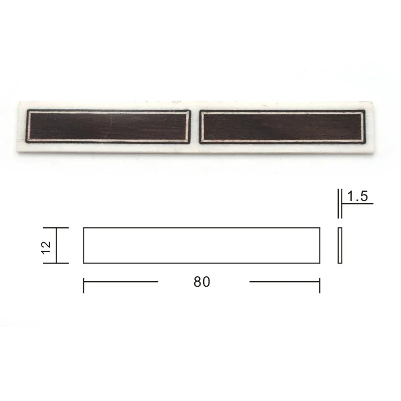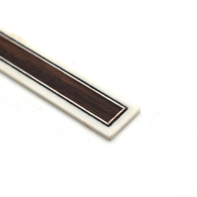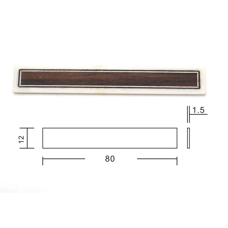 Imagine enhancing your classical guitar with a refined touch of craftsmanship. This high-quality bridge inlay from the Bone Frame Series seamlessly combines natural wood and bone materials, offering a sophisticated look that elevates your instrument’s aesthetic. Its simple rectangular design, measuring approximately 80x12x1.5mm and weighing just 1 gram, ensures easy installation and durability for long-lasting performance. The inlay’s natural color options—A19, A20, A21, and A22—allow you to select the perfect match for your guitar’s tone and style. Crafted without hazardous chemicals, it’s a safe addition to your stringed instrument collection that complements your artistic expression beautifully.
