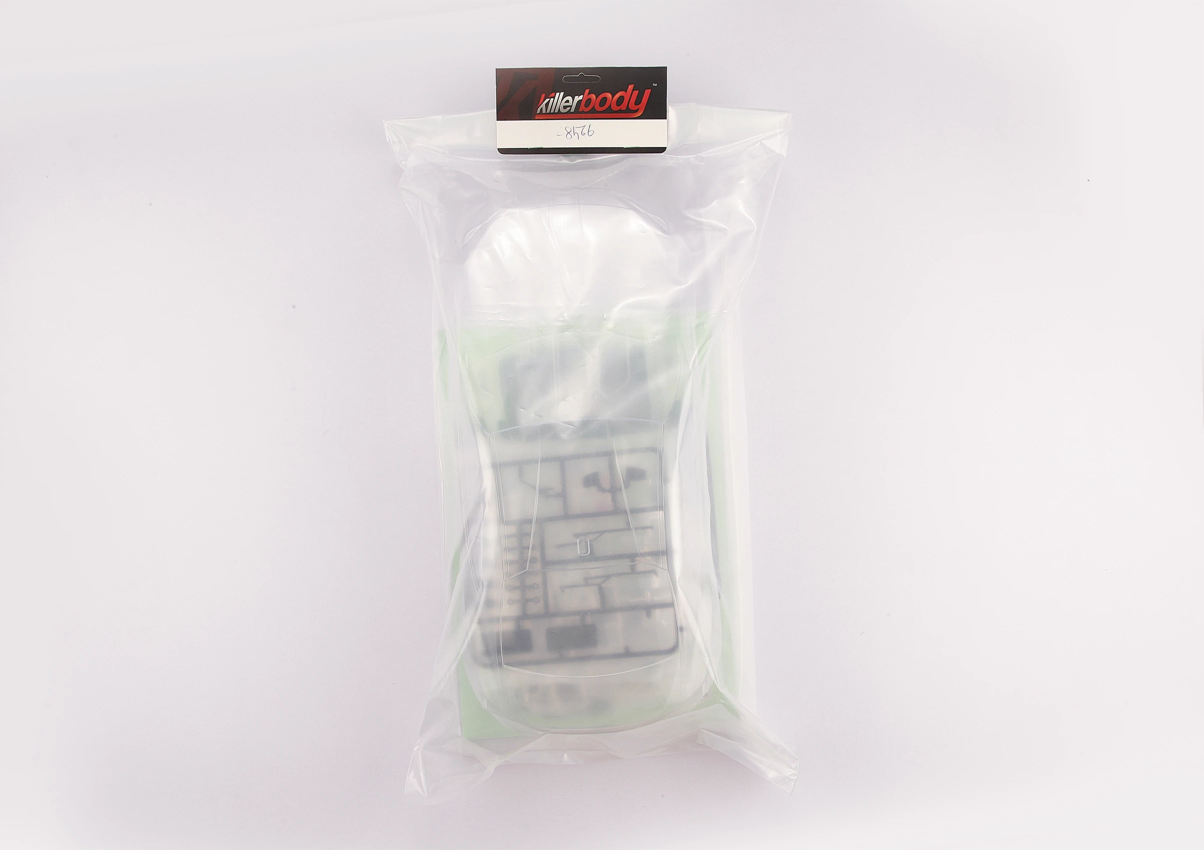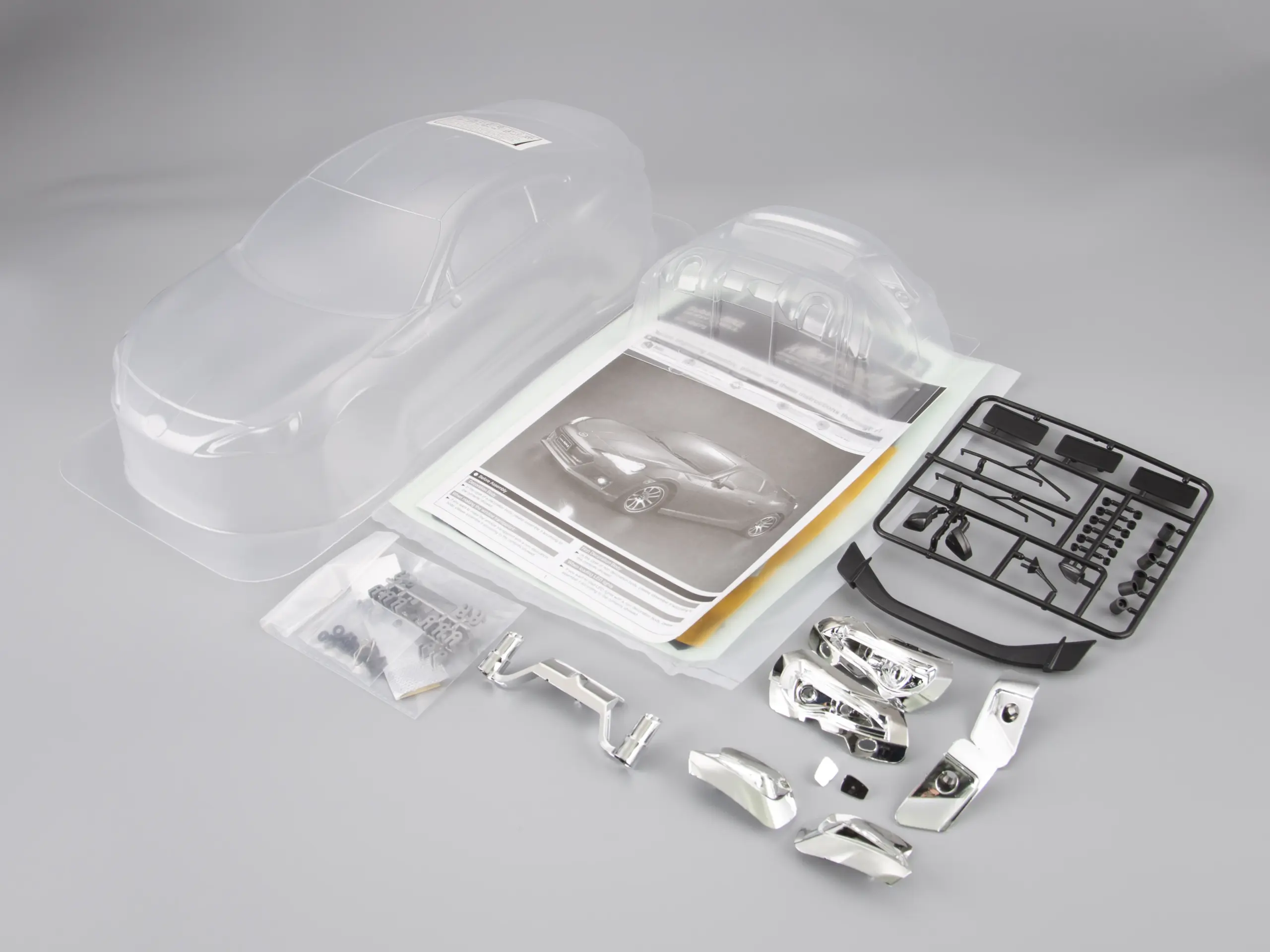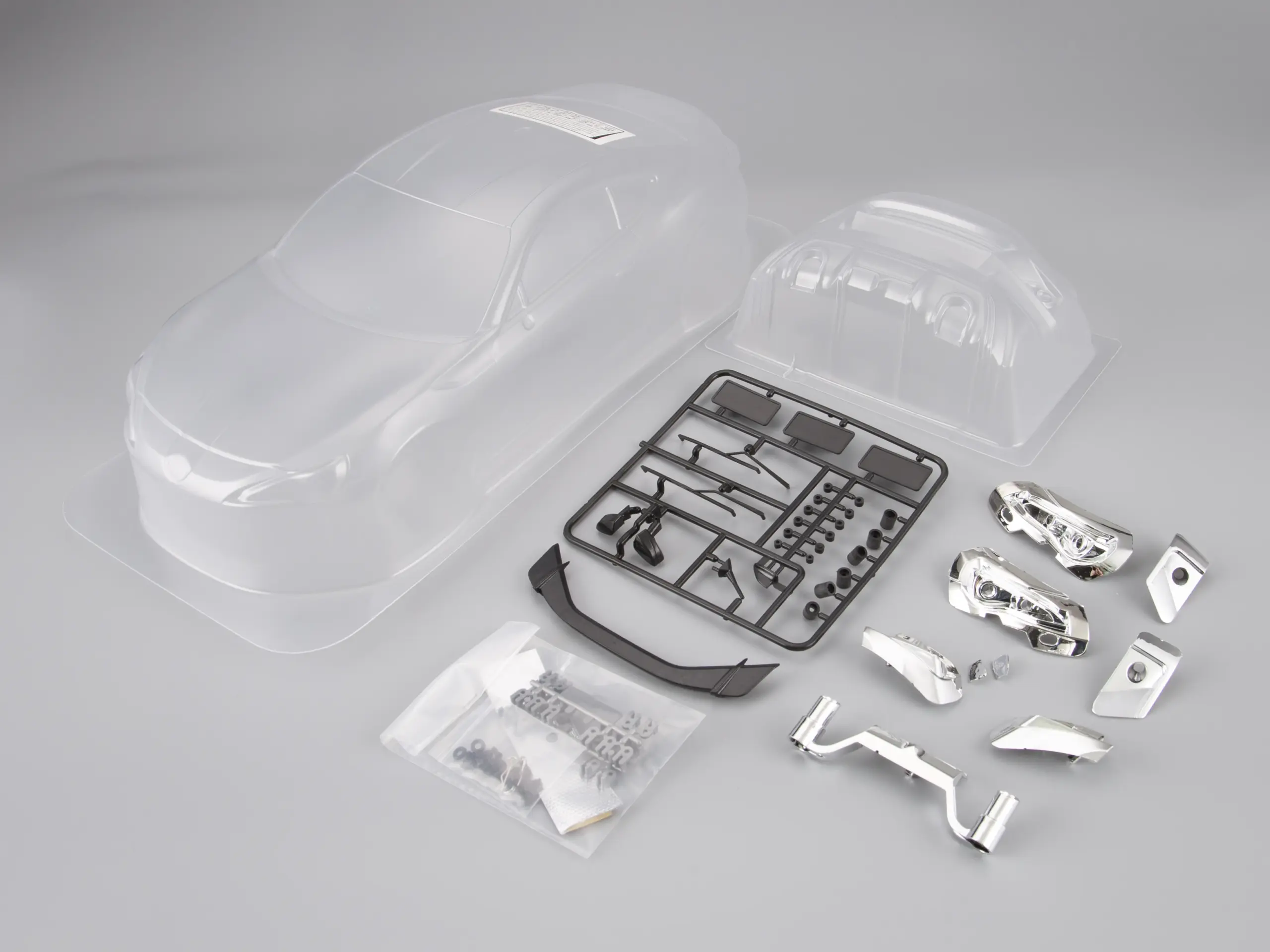 - Includes an untrimmed, transparent body shell, overspray film, window masks, and basic decal sheets for customization and finishing touches.
