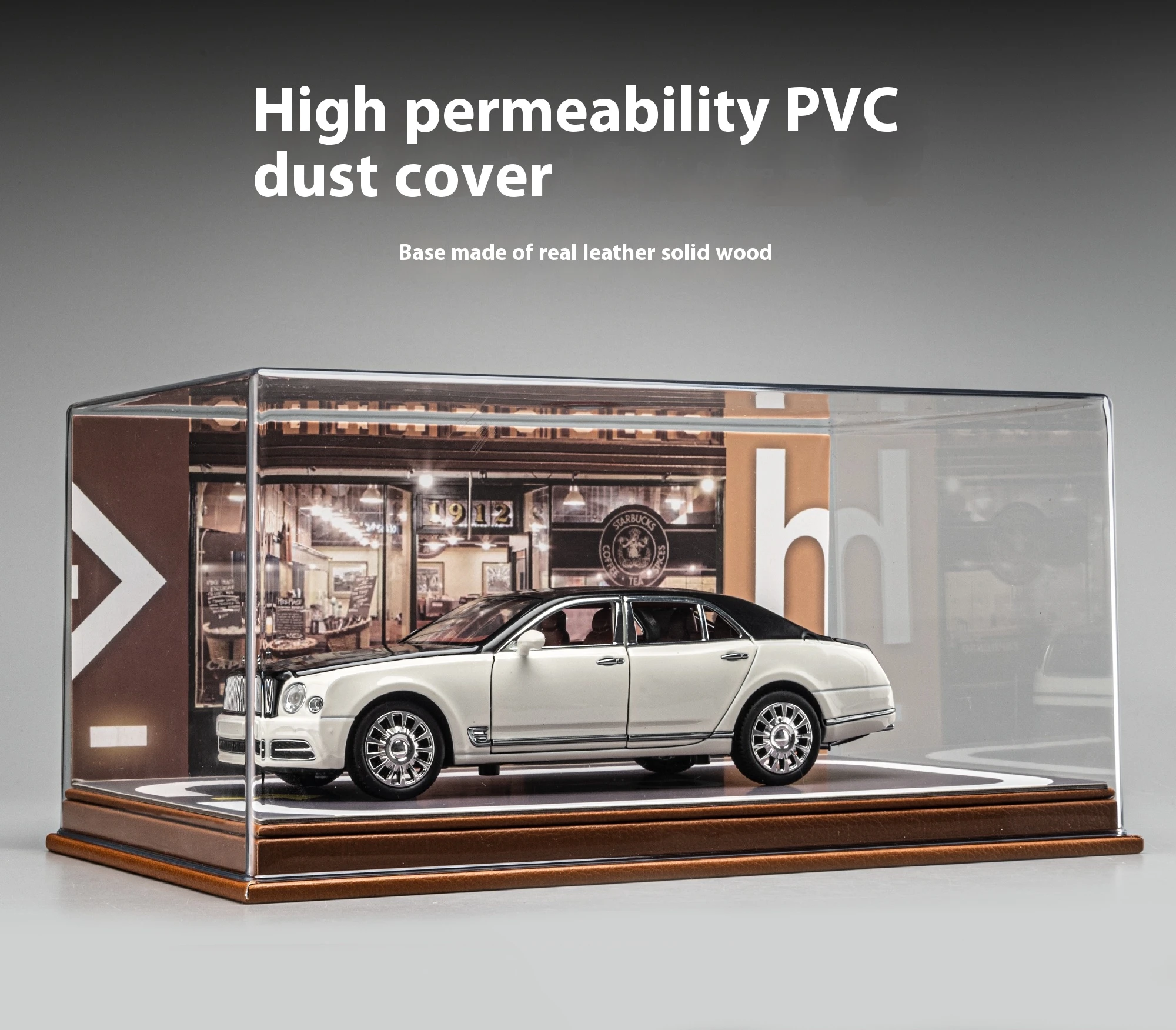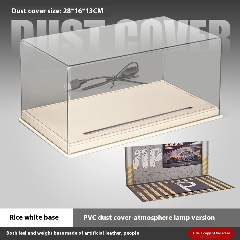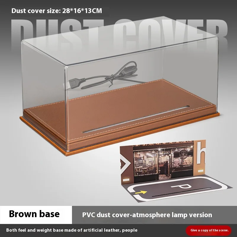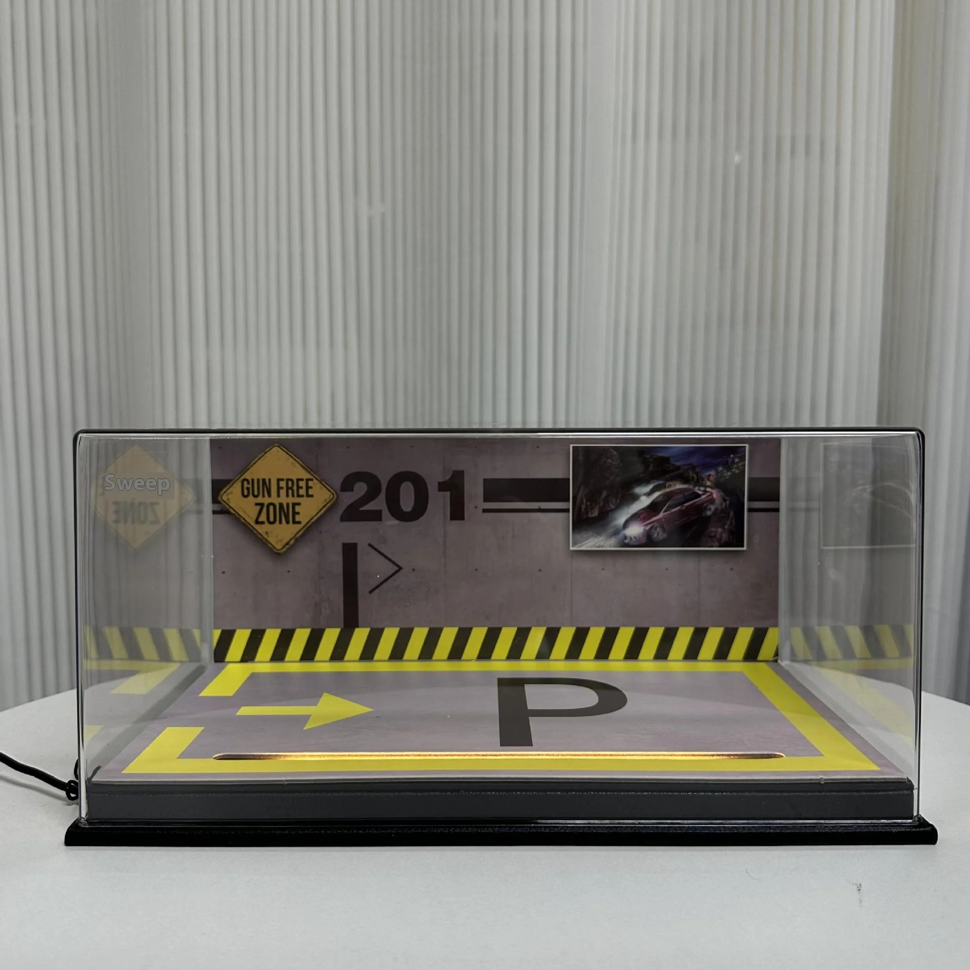 Imagine showcasing your prized 1:24 scale diecast car with this sleek, highly transparent display box. Its modern rectangular design offers unobstructed visibility, allowing every detail of your model to shine through. Gently angled front panels provide easy access and a polished look. The included parking lot scene backdrop adds a realistic urban ambiance, complete with signage, arrow markings, and concrete textures to elevate your display. Crafted from durable, high-quality acrylic, this dust cover protects your models from dust and damage while highlighting their aesthetic appeal. Available in multiple colors—Black, Black Light, Brown, Brown Light, White, and White Light—this display case seamlessly complements any collection, making your model cars look truly professional and attractive.
