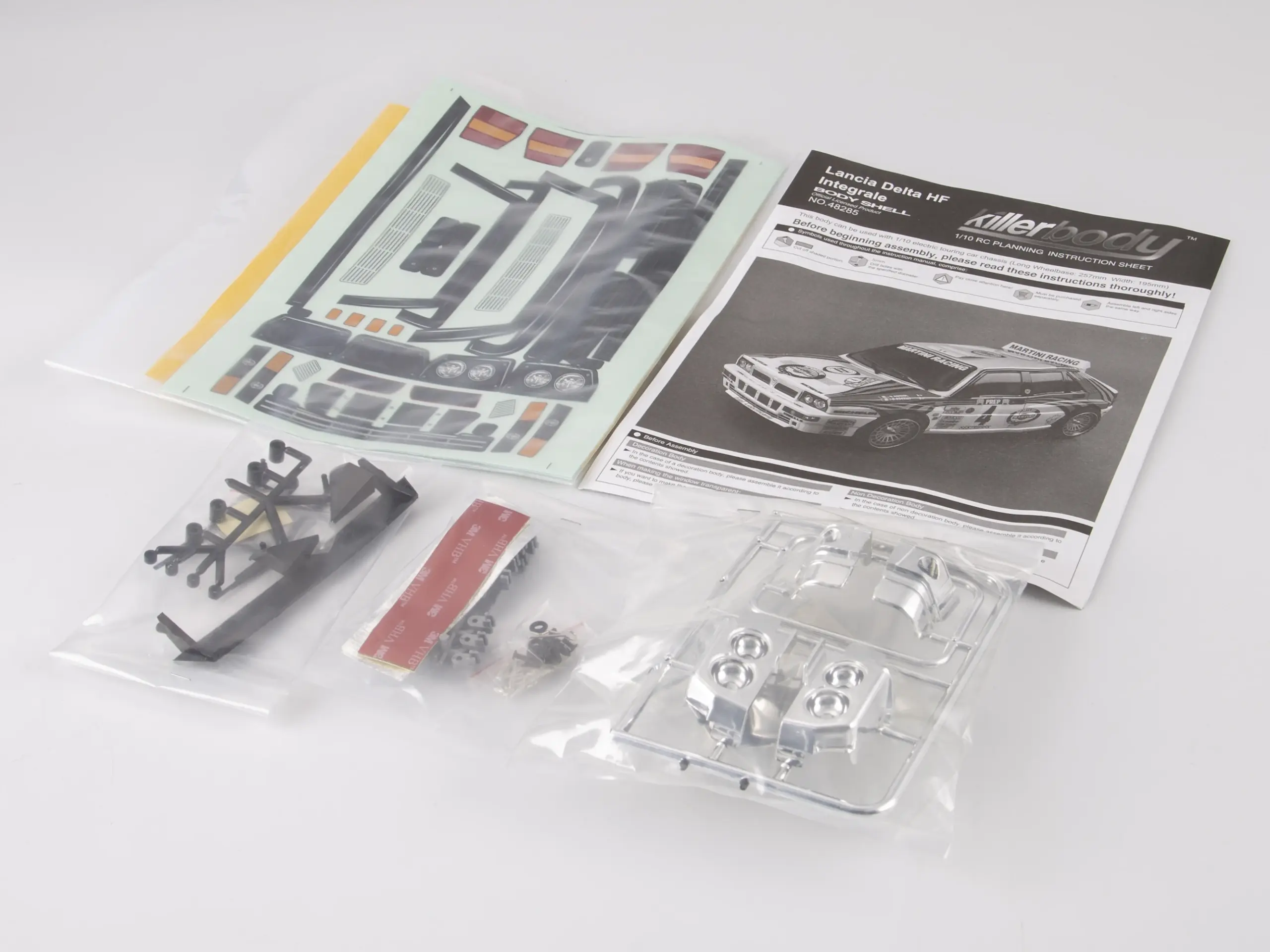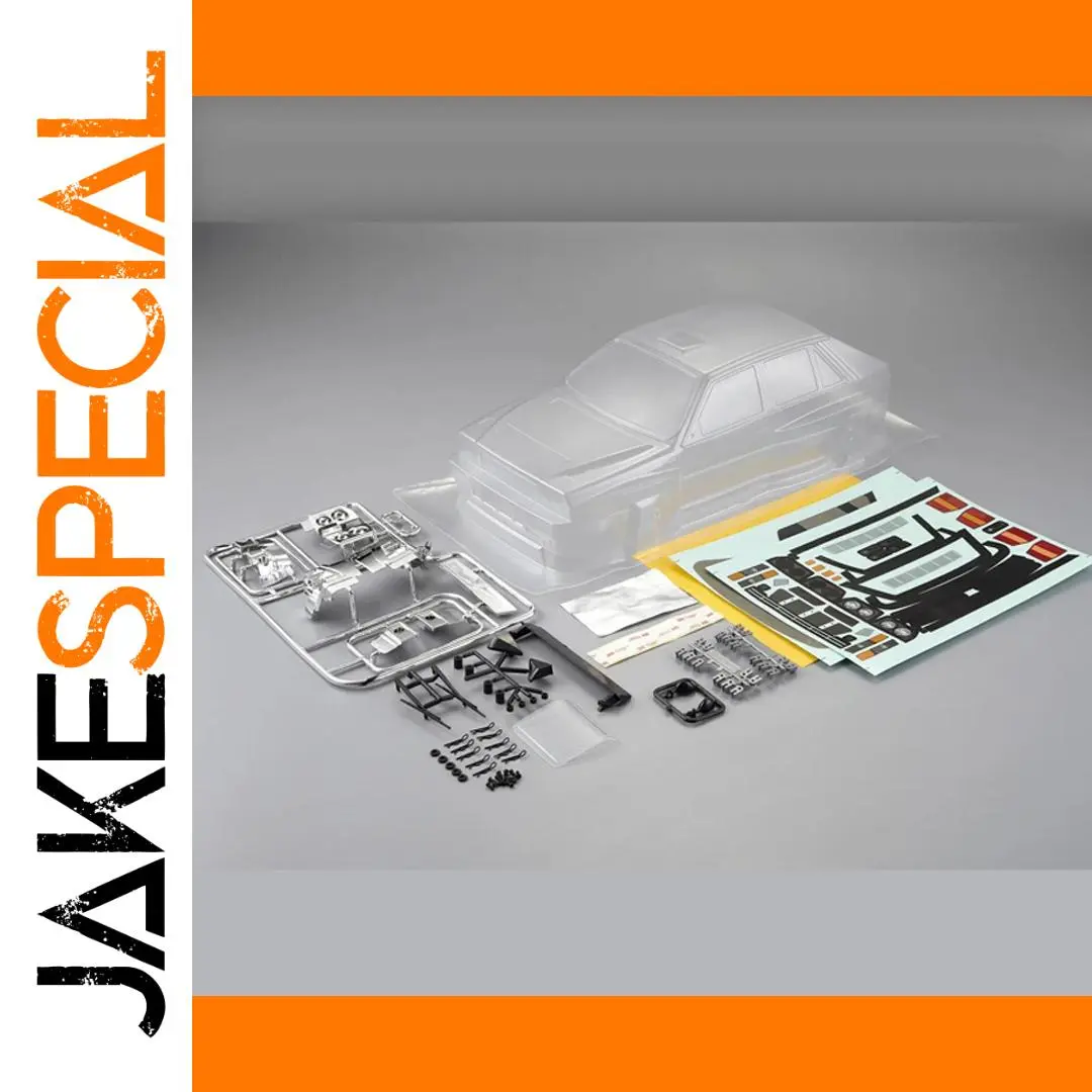 Experience the thrill of rally racing with this 1/10 scale RC body shell designed for electric touring cars, specifically compatible with Lancia Delta HF Integrale models. Crafted from 1.0mm polycarbonate from Japan, it features a clear, lightweight, and durable construction with a 257mm wheelbase, 195mm width, and 49mm overall height. The shell includes precisely pre-cut holes, overspray film, window masks, a decal sheet, chromed plastic light buckets, grille, black plastic wing mirrors, wipers, and a rear wing, alongside a roof air intake. Complete with hardware like screws, O-rings, body clips, LED stoppers, double-sided tape, and aluminum tape, this easy-to-install body promises a realistic, aerodynamic look to elevate your RC racing experience.