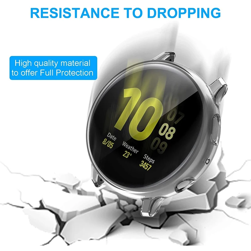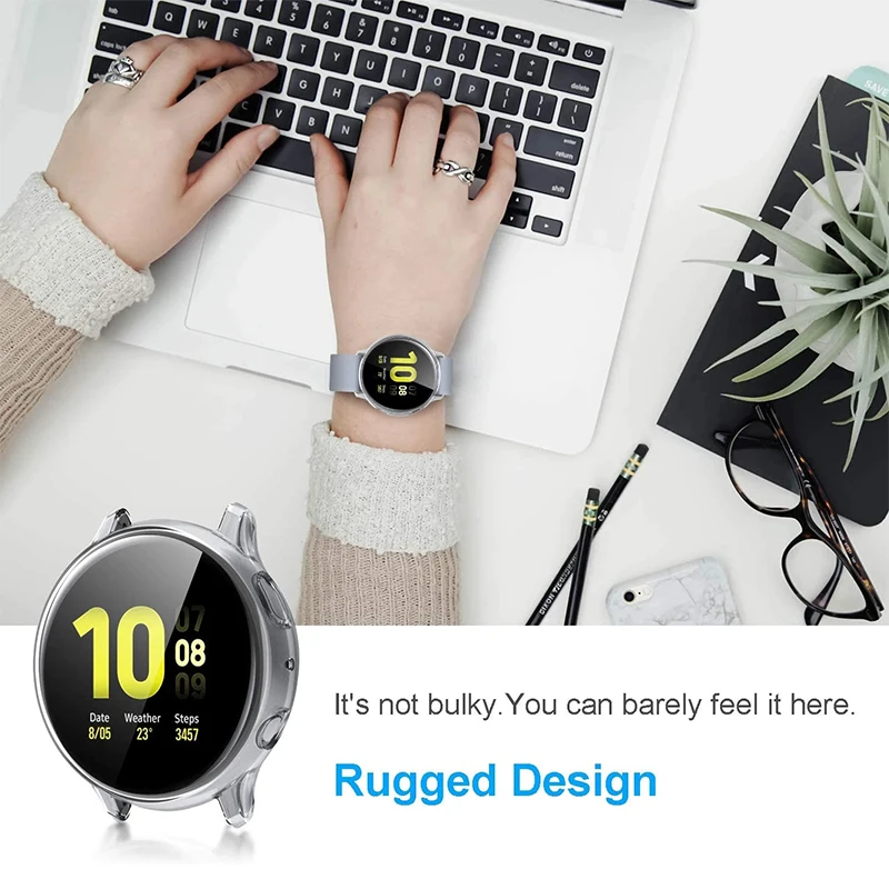 - Full coverage design protects against dust, dirt, scratches, and impacts, keeping your Galaxy Watch Active 2 in pristine condition, compatible with 40mm and 44mm dial sizes.