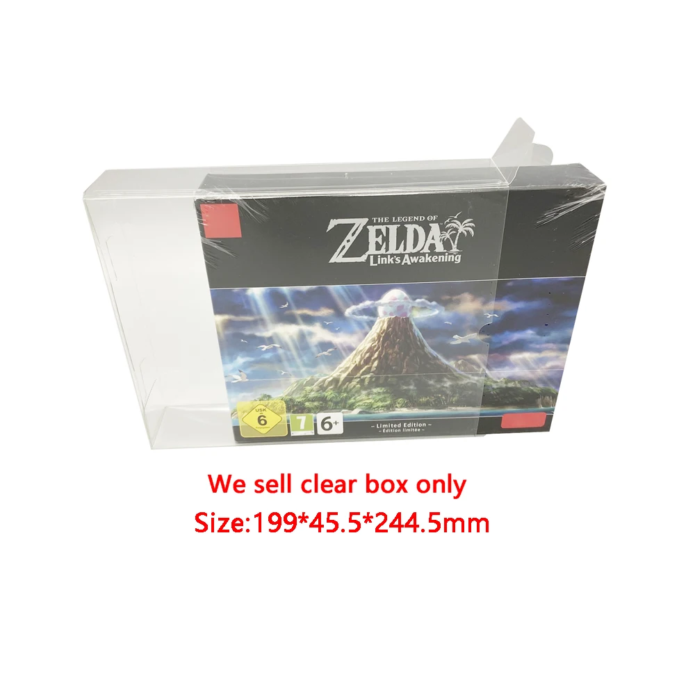 Enhance the protection of your European Nintendo Switch NS with this transparent PET cover, designed specifically for the Legend of Zelda: Link’s Awakening EU Limited Edition collection display box. Measuring 199*45.5*244.5mm, it offers high permeability, dust-proof, pressure-proof, and abrasion-resistant features to keep your game collection pristine. Easy to install—simply tear off the protective film, fold, and insert your game box—this clear cover provides reliable protection from dust and pressure while maintaining the aesthetic appeal of your collectible. Crafted from durable materials, it’s an essential accessory for dedicated enthusiasts seeking to safeguard their limited edition gaming treasures.