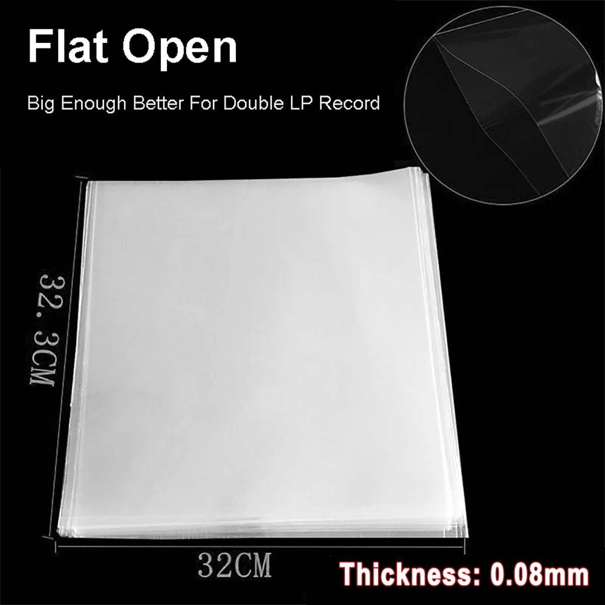 - These sleeves are made from high-quality polyethylene with 0.08mm or 0.1mm thickness options for durability and protection against daily wear. They fit standard 12-inch records perfectly.