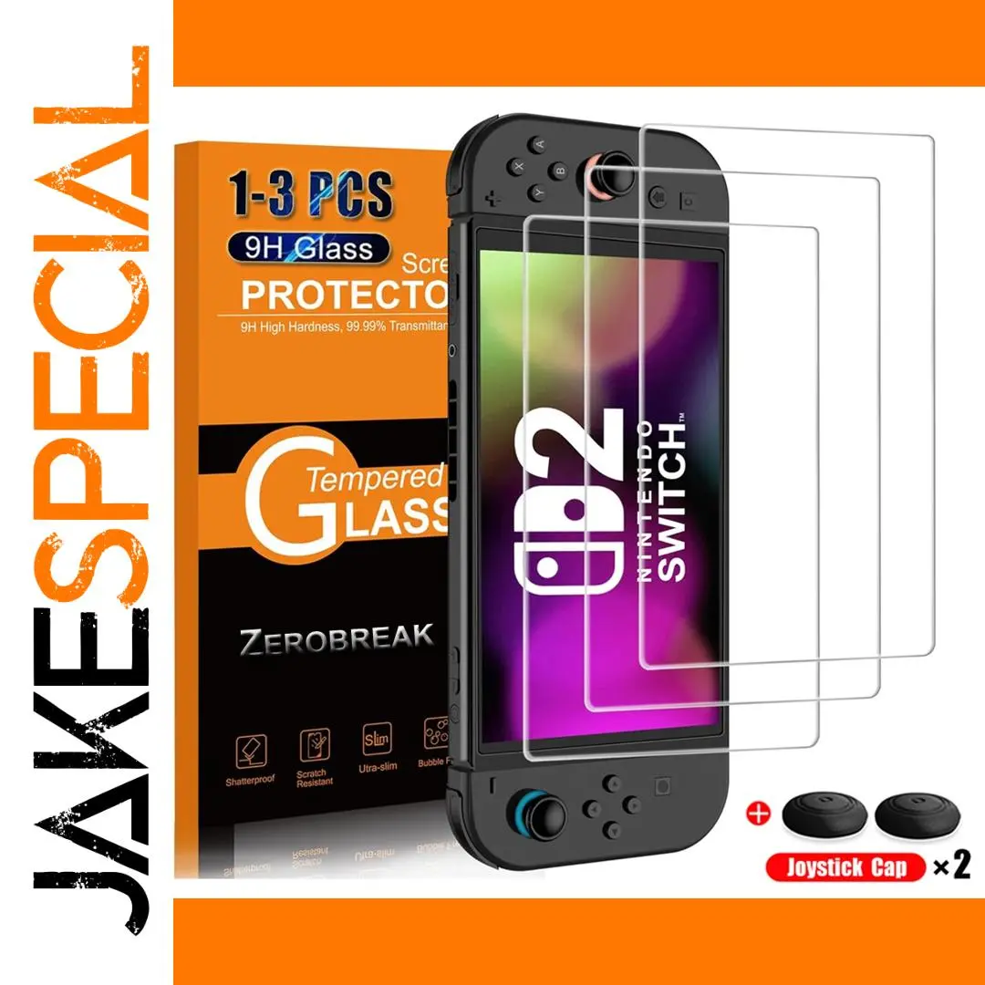 Protect your Switch 2 (2025 model) with this high-quality tempered glass screen protector, featuring 9H military-grade hardness to resist scratches, impacts, and drops up to 10 feet. The ultra-thin, edge-to-edge design offers 99.9% transparency for crystal-clear visuals and maintains responsive touch sensitivity. Easy to install with bubble-free application, it provides comprehensive, dust-free coverage, ensuring your device stays in pristine condition. The package includes joystick caps for extra controller protection, and available sets of 1, 2, 3, or 6 pieces. Perfectly tailored for seamless compatibility and durability during intense gaming sessions.