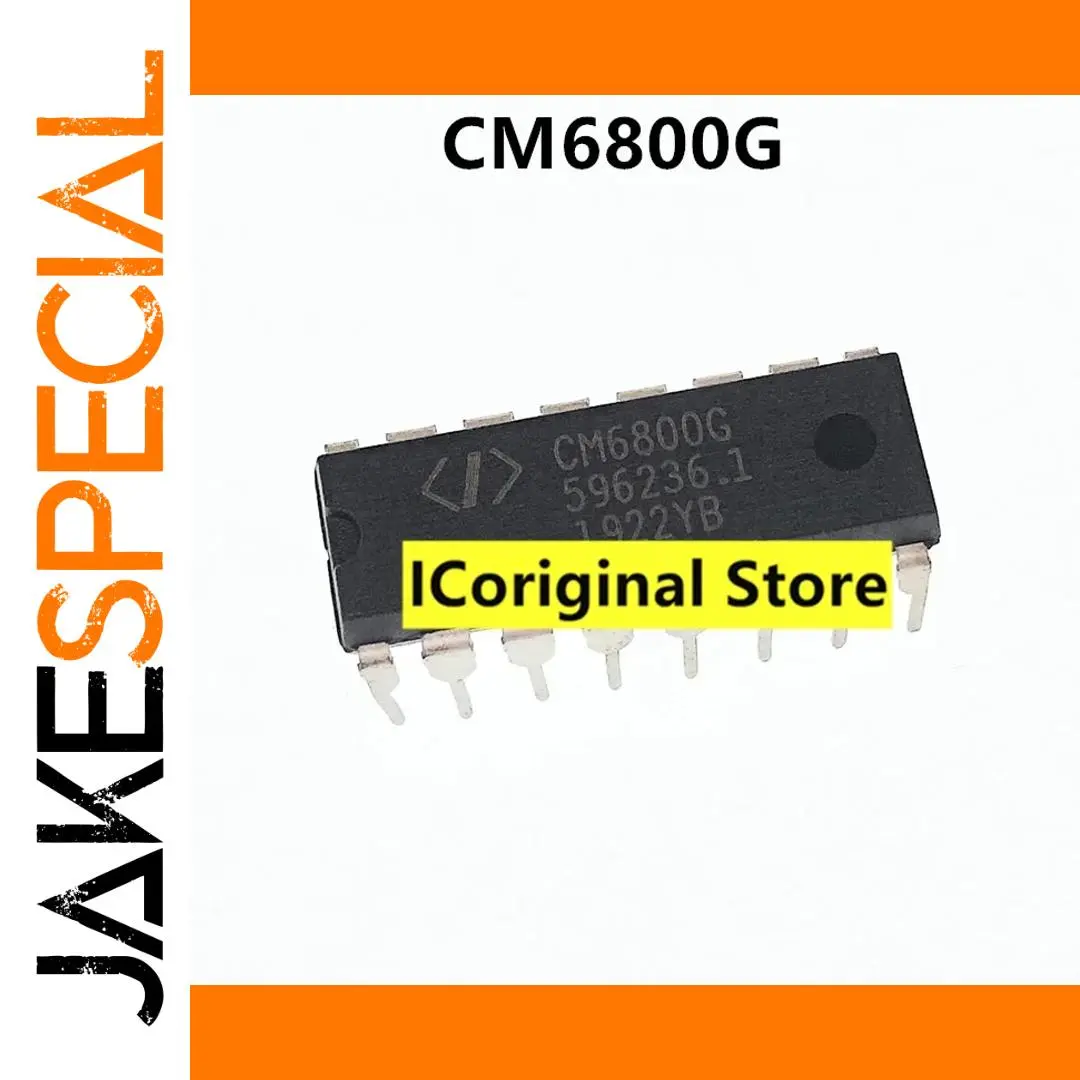 Experience reliable power management with this original CM6800G, CM6800AG, CM6800I, and CM6800 power management IC in DIP16 package. Designed as a high-precision voltage regulator, this new and tested component ensures optimal performance in your electronic projects. Its black, rectangular body with evenly spaced pins on each side offers a streamlined, industrial aesthetic, complemented by crisp silver markings that display the model information. Perfect for seamless integration into power regulation circuits, its durable construction and high-quality design make it an essential component for professional repairs or custom electronics. Trust in its authenticity and performance for your next project.