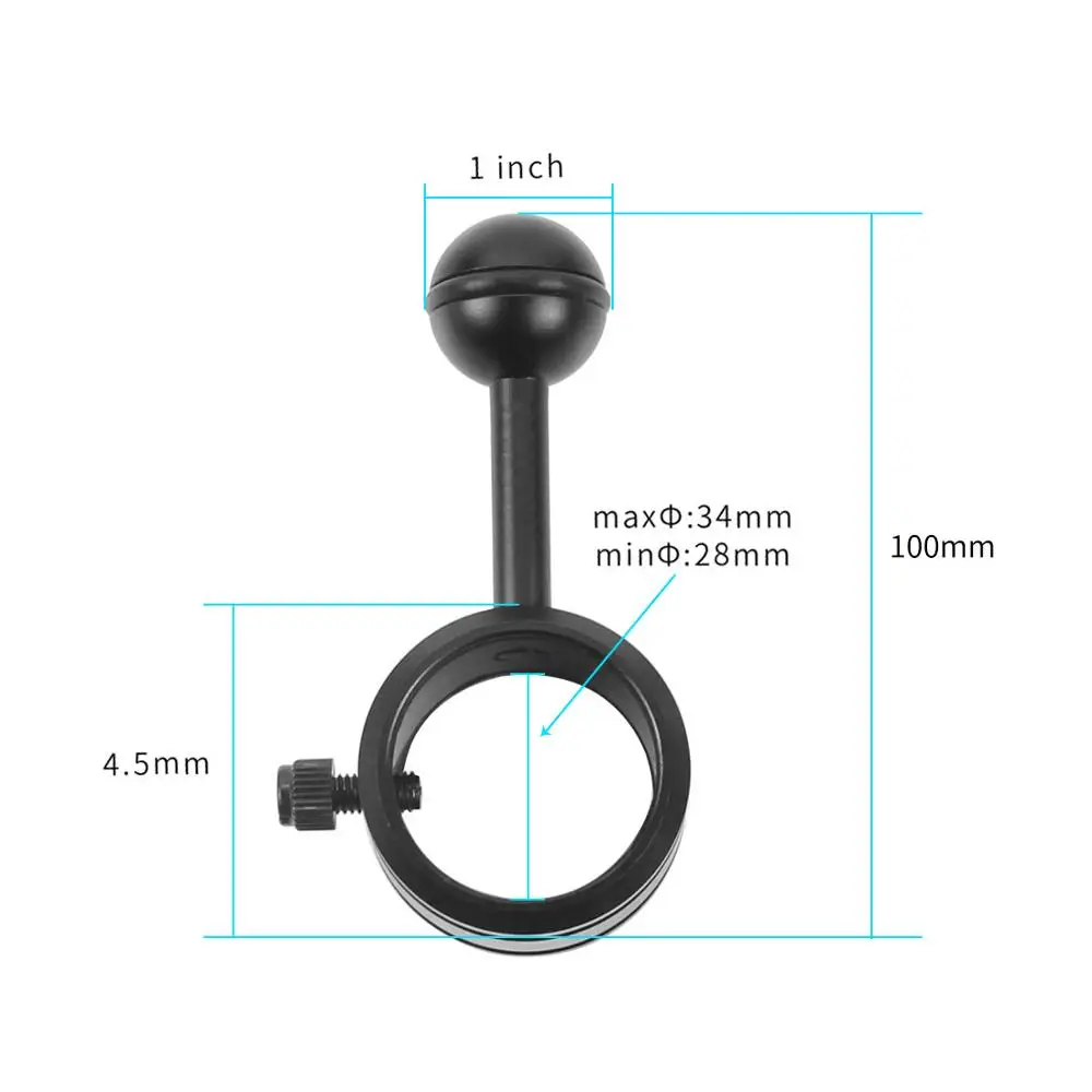 - 100mm total length with a rubber-coated, 25mm ball head that offers flexible, secure positioning and enhanced grip during underwater use.
