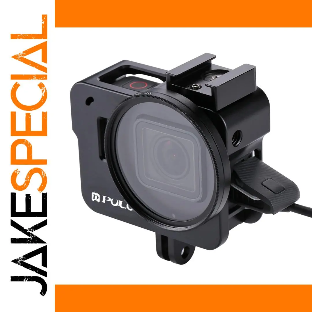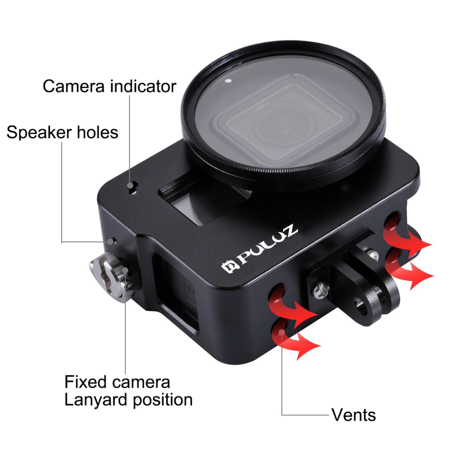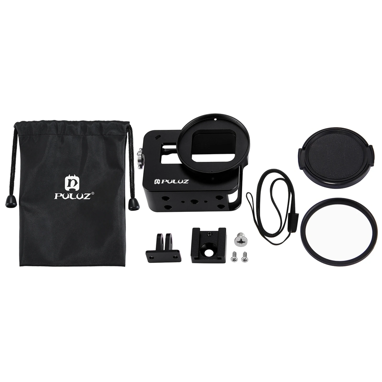 Enhance your GoPro experience with the PULUZ Aluminum Alloy Protective Cage, designed specifically for GoPro HERO (2018), 7 Black, 6, and 5 models. Crafted from durable CNC metal, this cage offers exceptional stability during aerial photography and prevents overheating, ensuring optimal performance. It features a user-friendly installation process with a fixed seat and a 1/4 inch screw hole for tripod compatibility. Included with the cage are a 52mm UV lens, base adapters, cold shoe adapter, and a lanyard, making it the perfect all-in-one solution for capturing breathtaking moments. Elevate your adventures and protect your camera with this essential accessory.