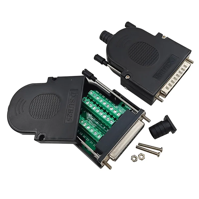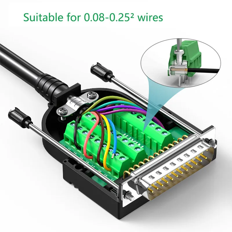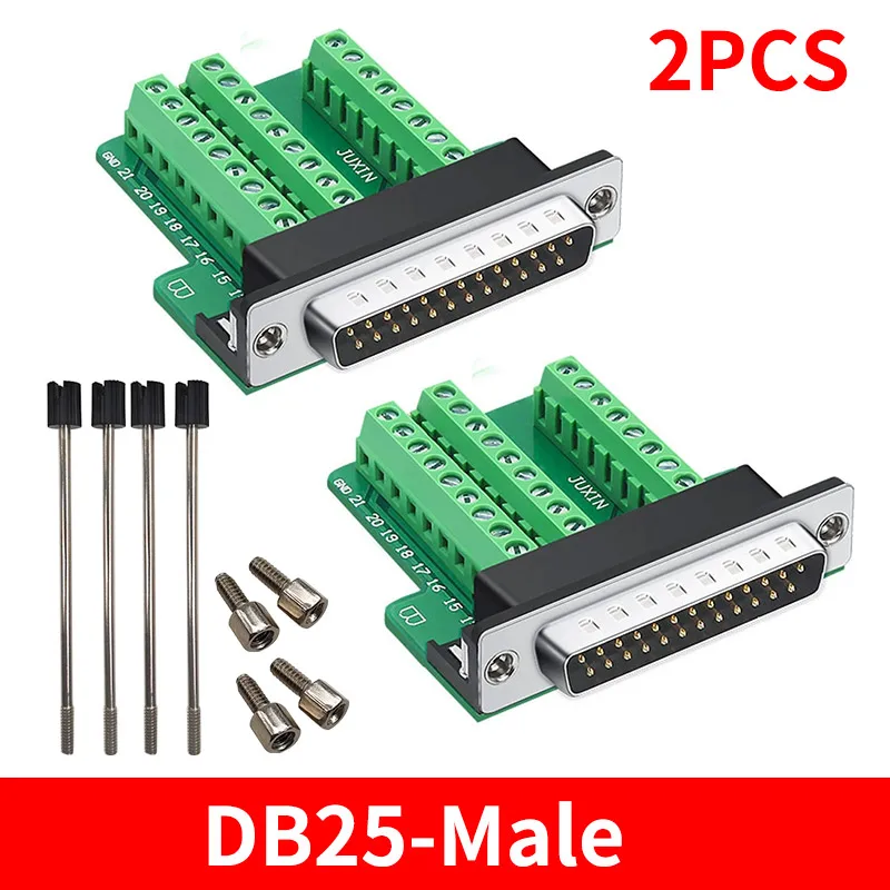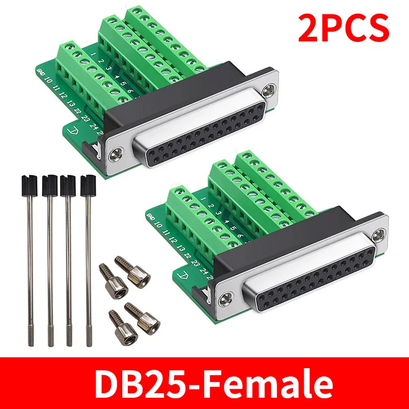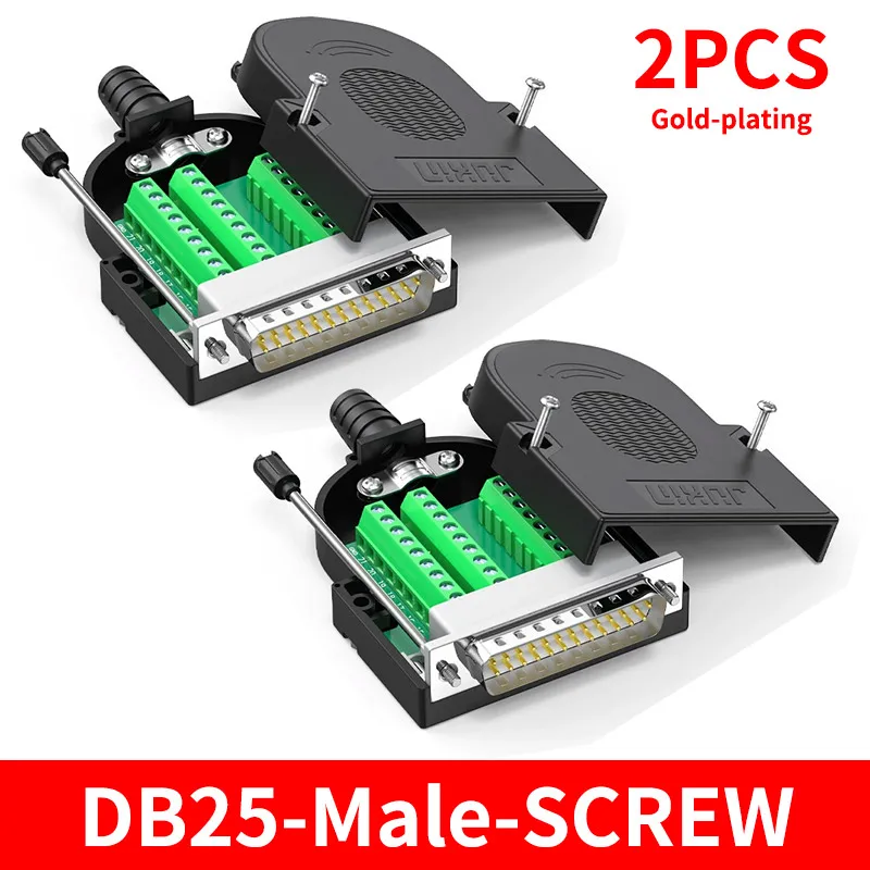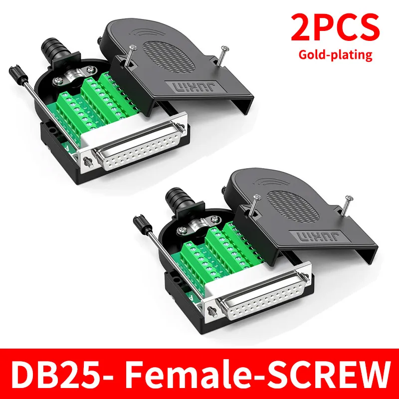 Imagine installing your serial and parallel port connections effortlessly with these sleek CNMAWAY DB25 solder-free connectors. Designed for both male and female interfaces, each 25-pin connector features a sturdy D-shaped metal shield with a matte finish, offering a professional and durable look. The green terminal blocks provide a vibrant contrast, adding an organized, high-tech appeal. Featuring screw clamp terminals, these connectors ensure secure, solder-free wiring that simplifies your setup process. Perfect for industrial environments, these connectors combine functionality, reliability, and a clean aesthetic that enhances any system. Whether handling data transfer or device communication, you'll appreciate how streamlined and efficient this setup becomes once installed.