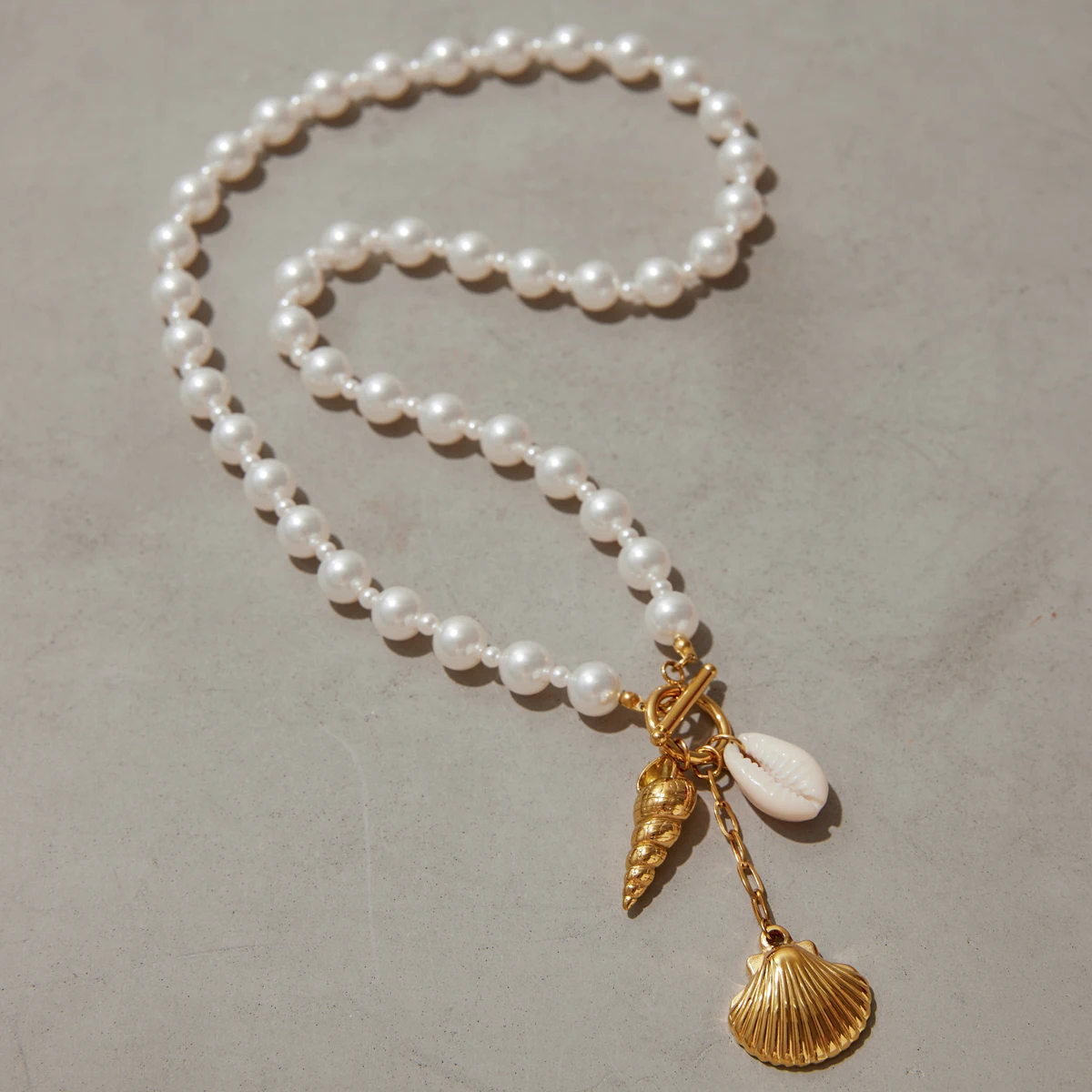 - Includes a strand of glossy, lustrous imitation pearls that lend a classic, sophisticated look, blending seamlessly with the beach-themed charms.