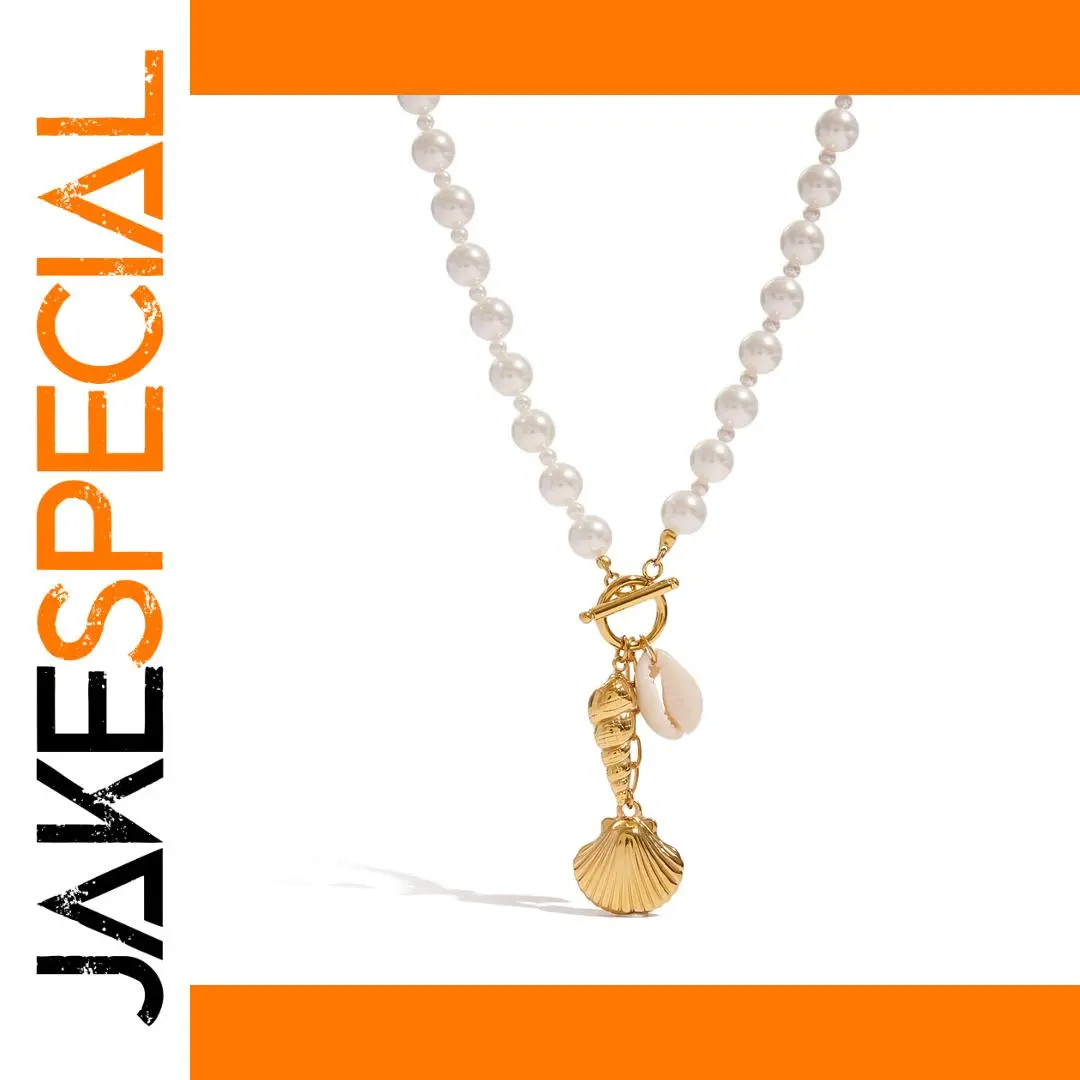 Immerse yourself in the beauty of the ocean with this stunning beach-inspired necklace, thoughtfully designed for those who cherish the seaside. Crafted from high-quality stainless steel, it offers impressive durability, tarnish resistance, and water-proof features, making it perfect for everyday wear, even during swimming or showering. Its delicate strand of lustrous imitation pearls exudes timeless elegance, complemented by a charming gold-tone pendant featuring detailed ridges and coastal motifs like scallop and conch shells. Playful charms dangle from the pendant, including textured seashells and twisted spiral designs, all emphasizing a joyful, summer beach vibe. Light and comfortable, it seamlessly combines fashion, durability, and coastal inspiration, ready to enhance your daily style.