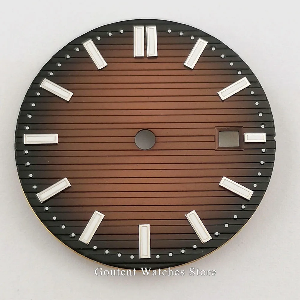 Transform your watch with this stunning Goutent 31.5mm coffee brown watch dial, perfect for enthusiasts looking to enhance their timepieces. This exquisite dial features a rich, textured finish with horizontal grooves and polished white hour markers that elevate its style. Whether you're upgrading your existing watch or building a new one, this dial promises to stand out. Its rounded shape and compatibility with ETA 2836/2824, DG2813/3804, and Miyota 8215/821A/8205/8200 movements allow for easy installation. Picture yourself adorned with this luxurious accessory, showcasing your appreciation for quality craftsmanship.