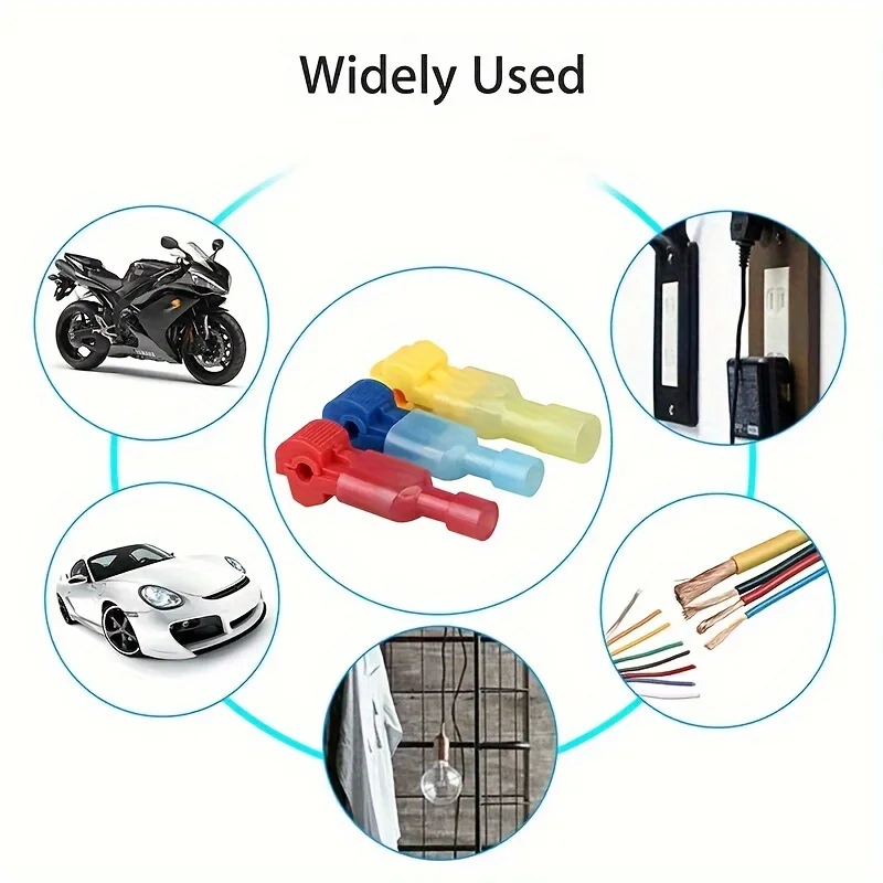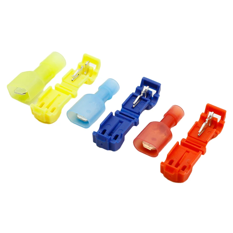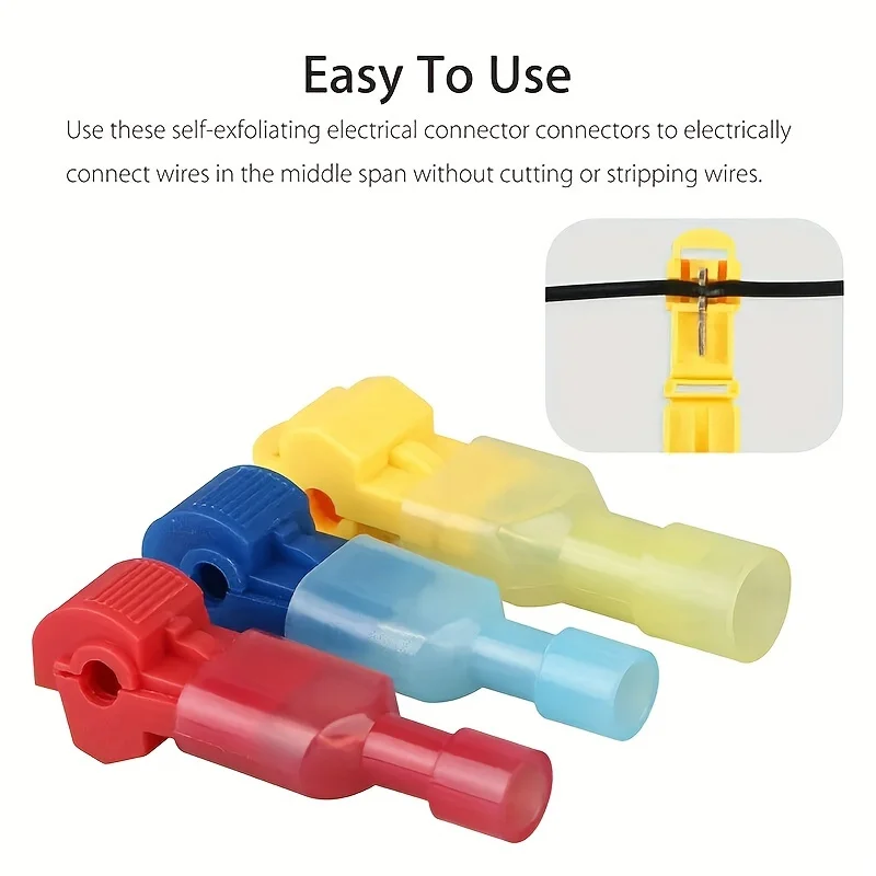 - The connectors are made of durable plastic with internal metal crimping components, featuring clip mechanisms for quick, secure splice connections without stripping wires.