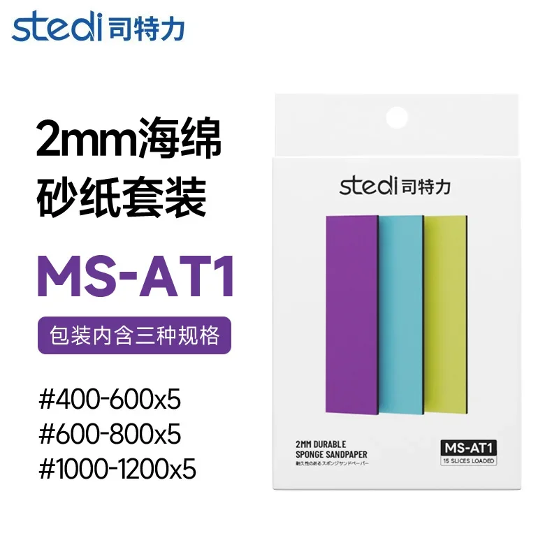 Experience precise and efficient sanding with this set of adhesive sponge sandpaper tools designed for plastic model assembly. Featuring bright, color-coded strips in green, purple, and blue, these tools combine durability and flexibility, making hobby DIY projects easier and more enjoyable. The set includes models MS-AT1, MS-DT1, MS-BT2, and a versatile 6-box combo with MS-AT2, MS-DT2, and MS-BT1, all with abrasive grit sizes of 2mm and 3mm, perfect for smoothing and polishing plastic surfaces. These tools’ sleek white packaging with bold black borders highlights their professional yet practical design. Suitable for enthusiasts aged 14 and above, they promise high-quality performance without involving harsh chemicals, keeping your workspace safe and eco-friendly.