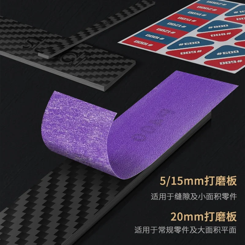 - Color-coded strips include green, purple, and blue, making it easy to differentiate grit sizes and manage sanding projects efficiently. The set is ideal for detailed plastic model work.