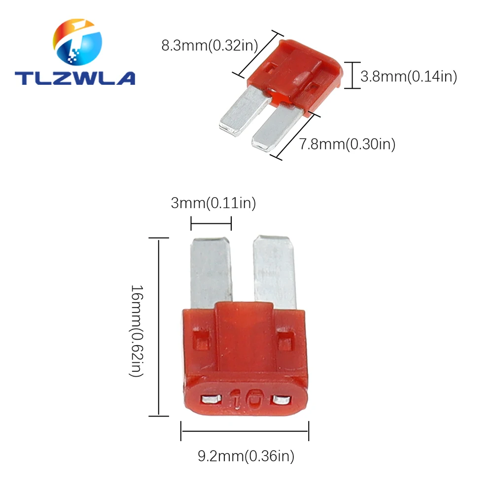 Ensure your vehicle’s electrical system remains safe and reliable with this set of 10 automotive micro fuses, available in amperages of 5A, 7.5A, 10A, 15A, 20A, 25A, and 30A. Each fuse measures 9mm x 15.5mm with a durable long M2 foot design, crafted from copper for excellent conductivity. The translucent plastic bodies in vibrant colors—green, white, yellow, blue, red, and brown—allow easy identification and visibility of internal components. With IEC compliance and CE and RoHS certifications, these compact, semi-custom fuses are perfect for automotive applications, providing a secure, low breaking capacity solution to protect your vehicle’s electrical circuits efficiently.