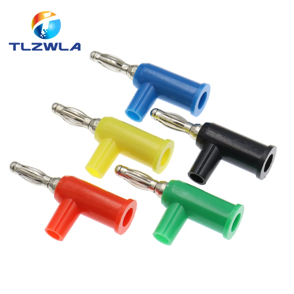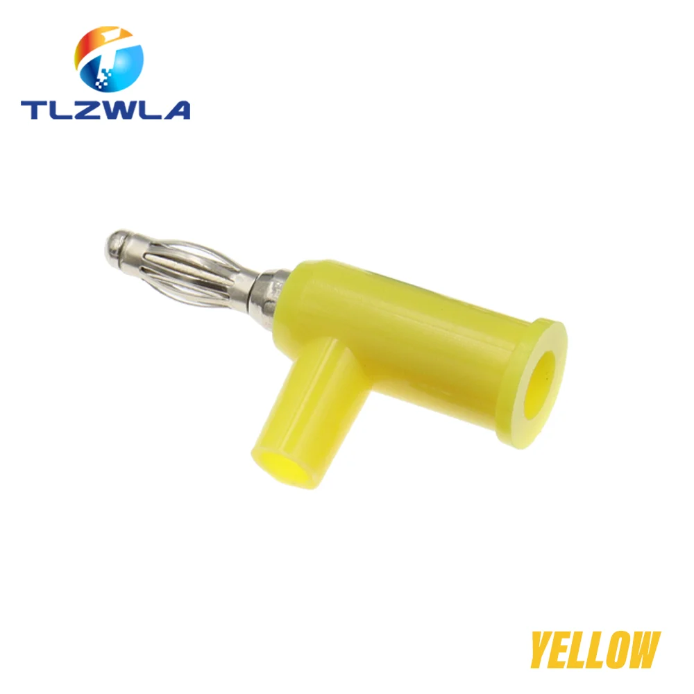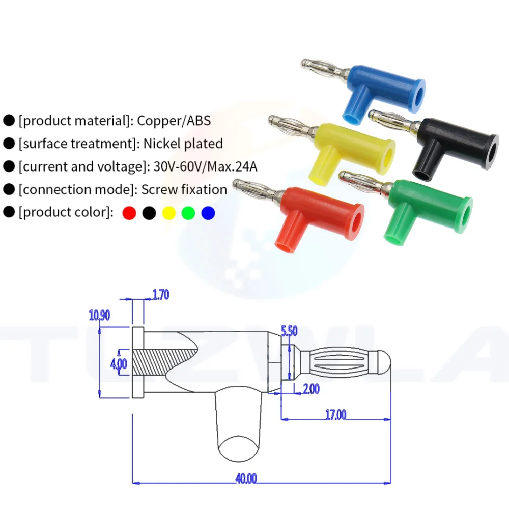 Enhance your electrical setups with this set of five vibrant, stackable banana plugs featuring color-coded handles in red, black, yellow, green, and blue for easy identification. Crafted from a durable copper-iron alloy with a shiny, metallic finish and encased in insulating ABS plastic, these plugs offer reliable screw-crimp connections for wires of 2.5mm or 4mm diameter. Designed for professional use, they support electrical performances of 30VAC to 60VDC with a maximum current of 2A and operate at 24V. The T-shaped design with ridged metal tips ensures secure contact, making them ideal for multimeter testing, audio applications, and electronic experimentation, backed by CE and RoHS certifications for safety and quality.