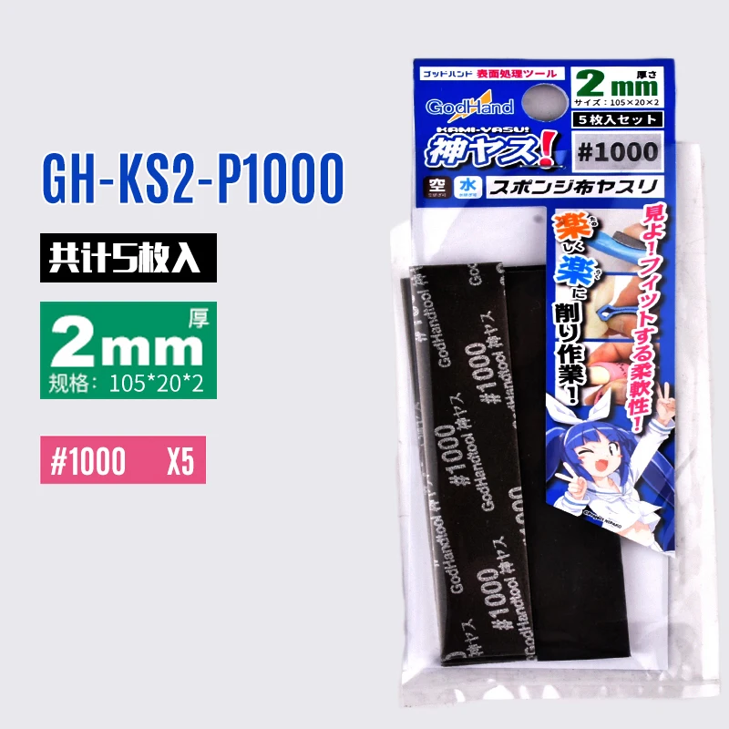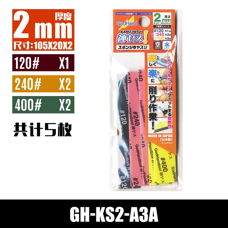 Imagine elevating your crafting and polishing projects with this colorful set of five sanding sponge sticks from GodHand. Designed to meet various finishing needs, each sponge measures 105mm in length, 20mm in width, and 2mm thick, offering flexibility and precision in your work. These textured, sponge-like abrasives come in bright, eye-catching colors—pink, yellow, green, blue, and black—each paired with matching labels indicating grit sizes from P120 to P1000. Their soft, textured surfaces allow smooth sanding, polishing, and finishing. Whether you're refining small parts or large surfaces, this set provides the perfect tools for detailed work, enhancing your craftsmanship and ensuring flawless results each time.