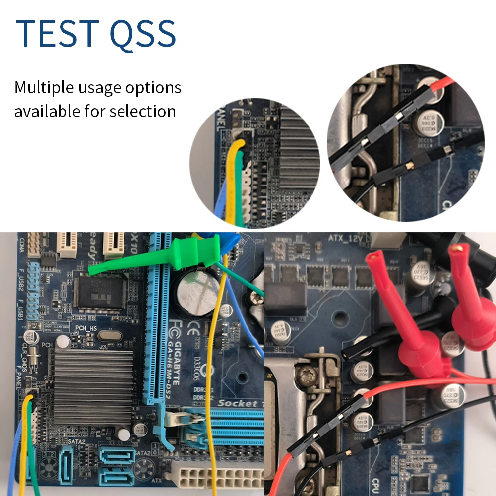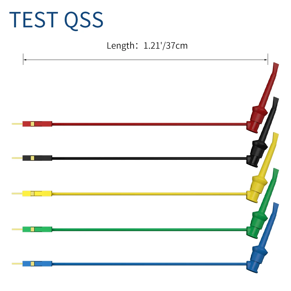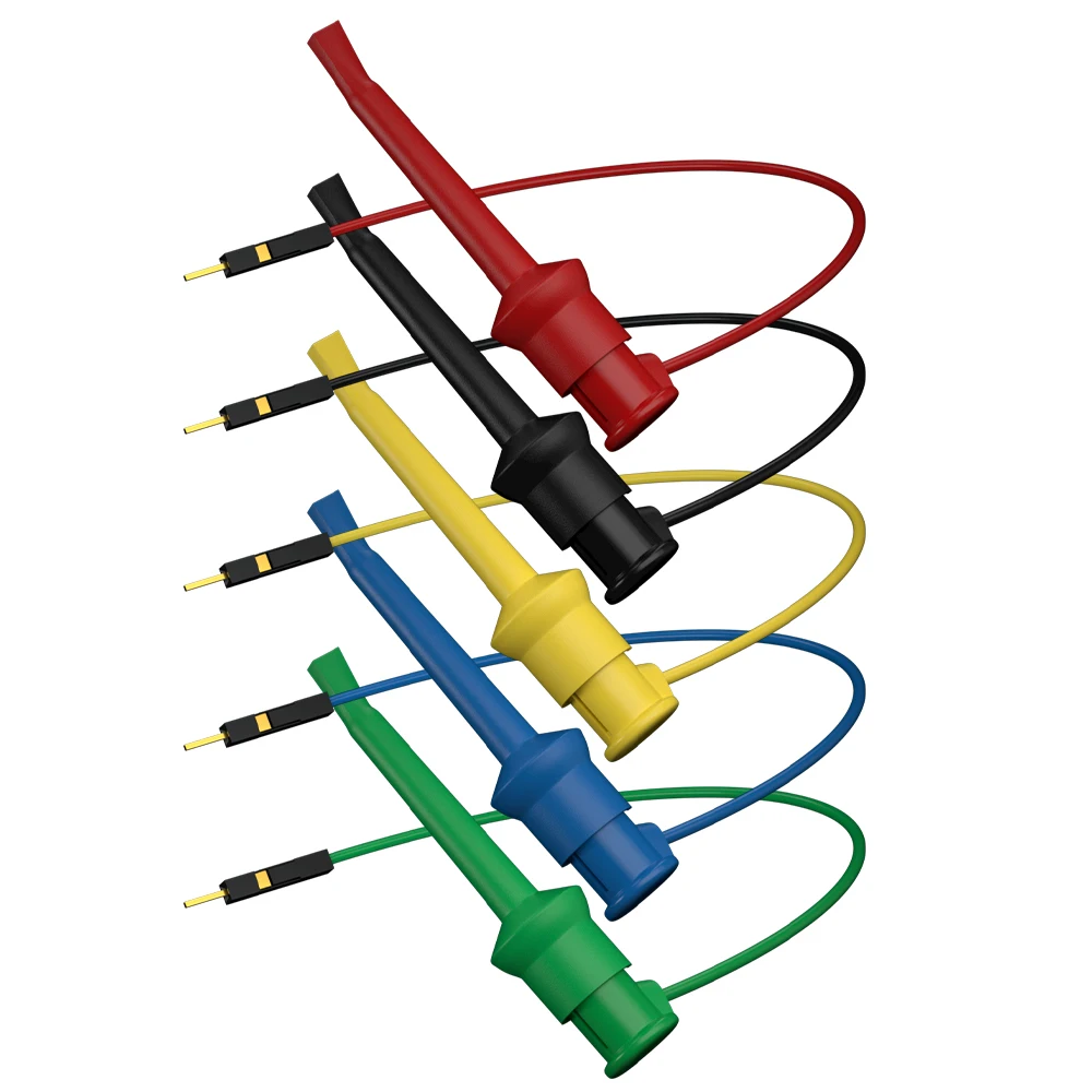 Experience reliable and flexible electrical testing with this set of 5 color-coded test lead wires, including male and female connectors with clips. Designed for DIY projects, these wires are crafted from soft, pliable materials that easily bend and maneuver for precise connections. The vibrant colors—blue, green, yellow, black, and red—help identify and organize testing setups effortlessly. Each wire features textured, ribbed clips for secure grip and stable connections. Perfect for electricians, technicians, or hobbyists, these versatile test leads deliver durability, ease of use, and accuracy in a variety of electrical troubleshooting and testing tasks, making your work more efficient and organized.
