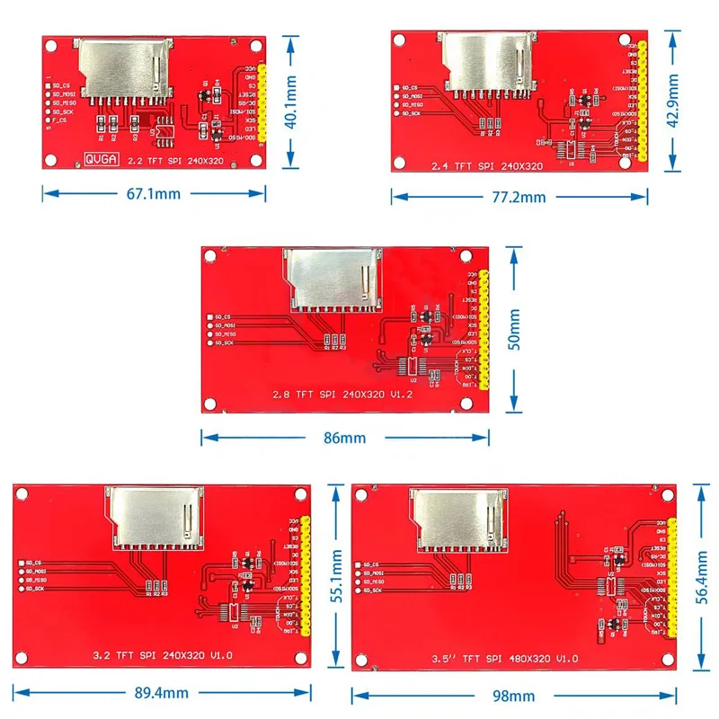 Color TFT LCD Display Modules 2.2-3.5 inch for Microcontrollers