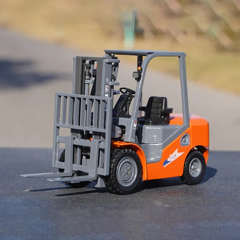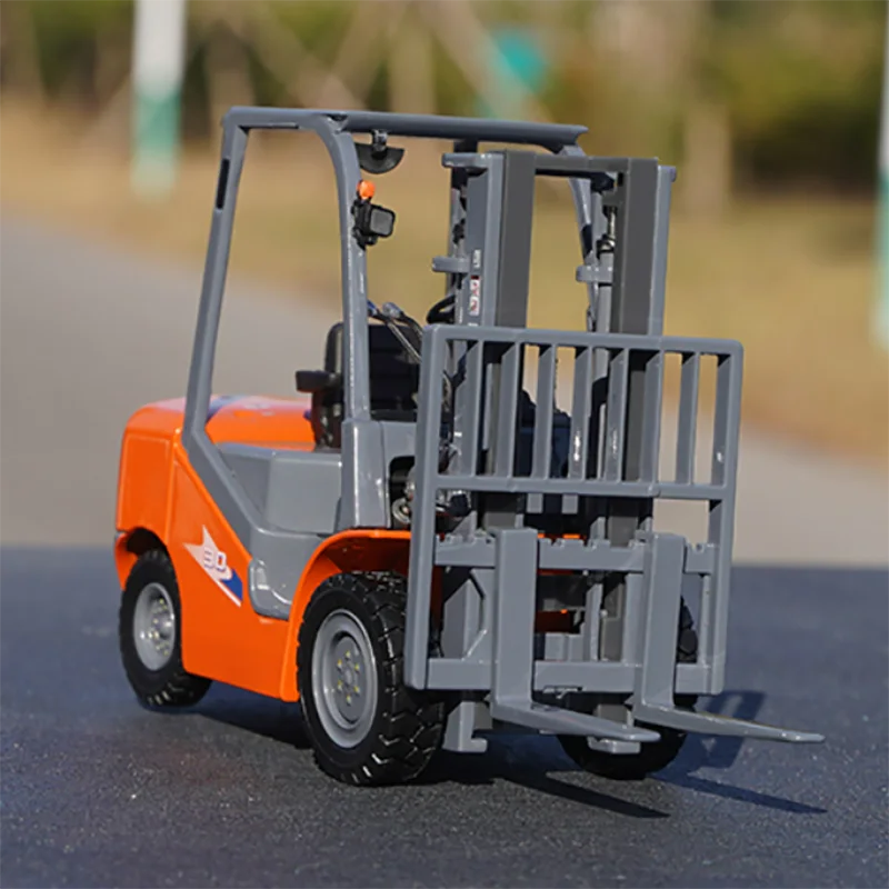 Imagine showcasing this meticulously crafted forklift model on your desk or shelf, adding a realistic industrial touch to your space. Measuring about 14.5 centimeters long, 4.5 centimeters wide, and 8 centimeters tall, this diecast replica captures a vibrant orange hue with contrasting gray components. The detailed design features textured surfaces on the platform, hydraulic cylinders on the mast, and realistic rubber tires for an authentic look. Perfect for collectors and enthusiasts, this model invites you to appreciate the precision and craftsmanship that make it stand out. Whether displayed at home, in your office, or as a gift, this miniature forklift adds a dash of industrial realism and eye-catching color to any setting.