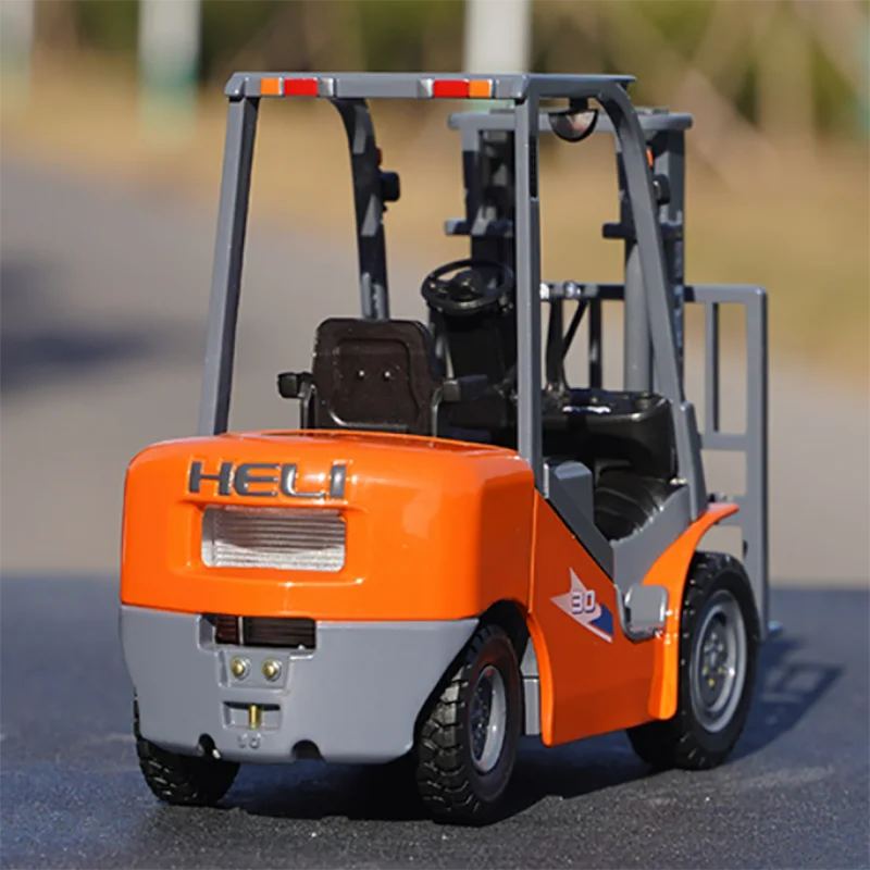 - The forklift's cabin features a sleek black steering wheel and minimalist design for a realistic miniature replica that appeals to collectors.