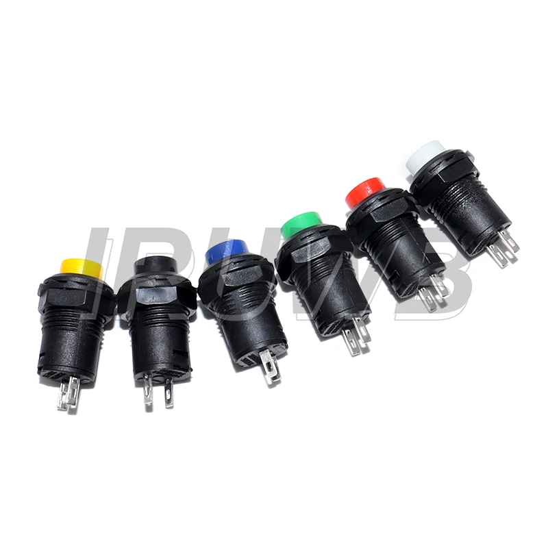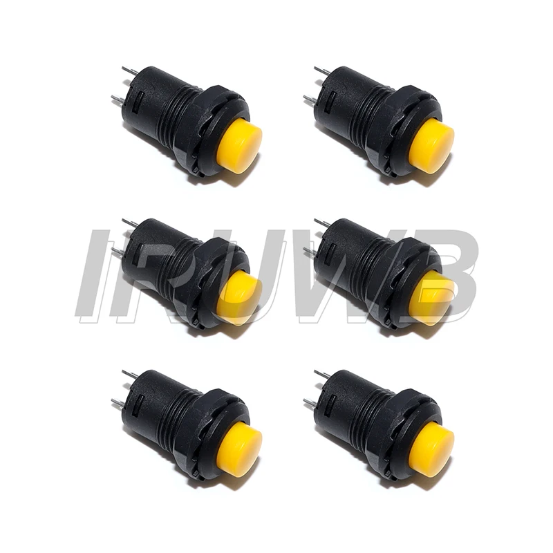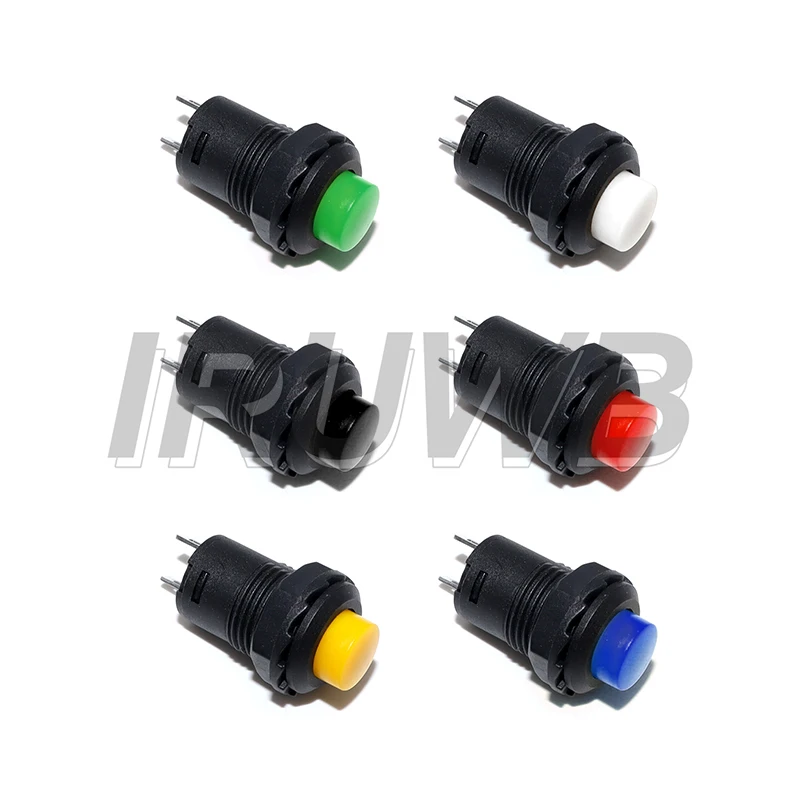 This set of six 12mm diameter pushbutton switches offers versatile functionality with both self-locking and momentary models, rated for 3A at 125VAC and 1.5A at 250VAC. Featuring vibrant color options including blue, yellow, red, green, white, and black, these durable switches boast high stability, excellent self-healing performance, and sleek black textured housings. Designed for reliable operation across various electronic and industrial applications, they combine modern aesthetics with robust craftsmanship to ensure long-lasting performance and dependable switching. Perfect for upgrading or building new electronic projects requiring high-quality, colorful, and stable pushbutton controls.