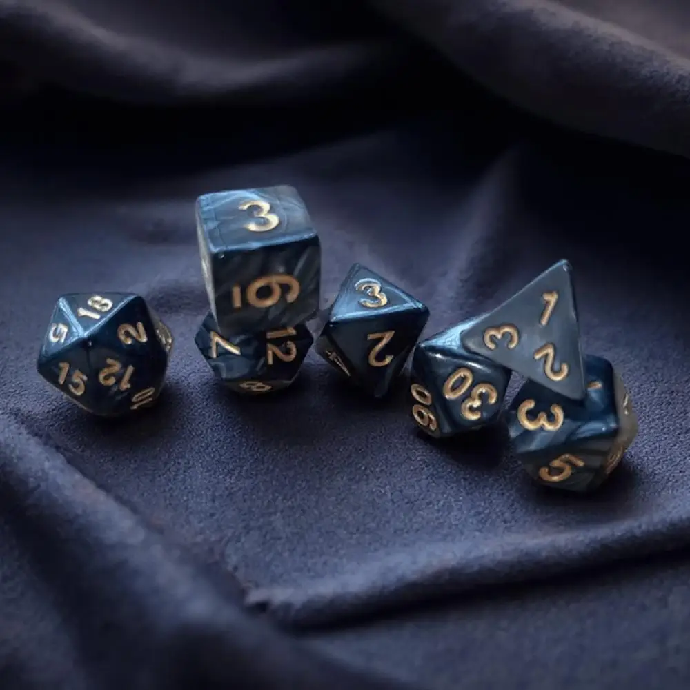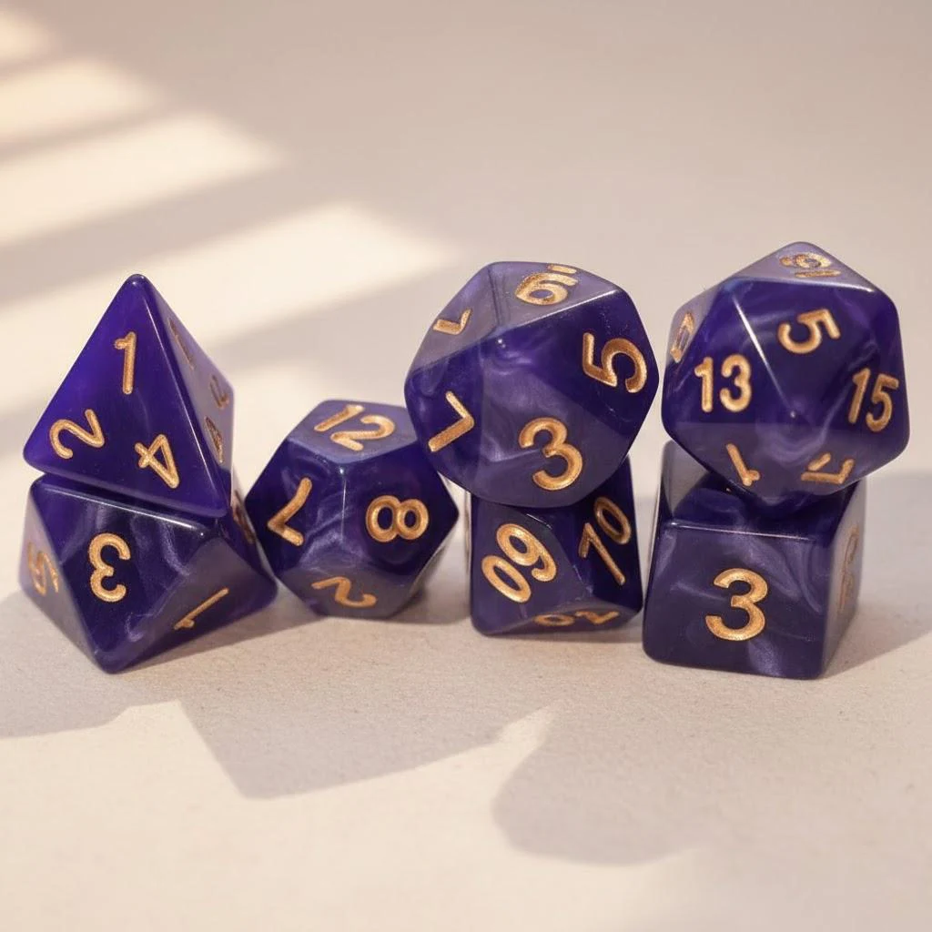 Elevate your tabletop gaming experience with this premium 7-piece polyhedral dice set, crafted from durable resin with a glossy enamel finish. Each die features large, easy-to-read numerals and ranges from 16mm to 23mm in face-to-face diameter, including a 20-sided die (22mm diagonal, 16mm height), a 12-sided die (18mm), two 10-sided dice (16mm, tip-to-tip 21.5mm), an 8-sided die (16mm), a 6-sided die (16mm), and a 4-sided die (22mm diameter, 16mm height). The heavy zinc alloy construction ensures a satisfying heft, available in striking colors such as black, white, red, blue, green, and purple—perfect for collectors and enthusiasts alike.
