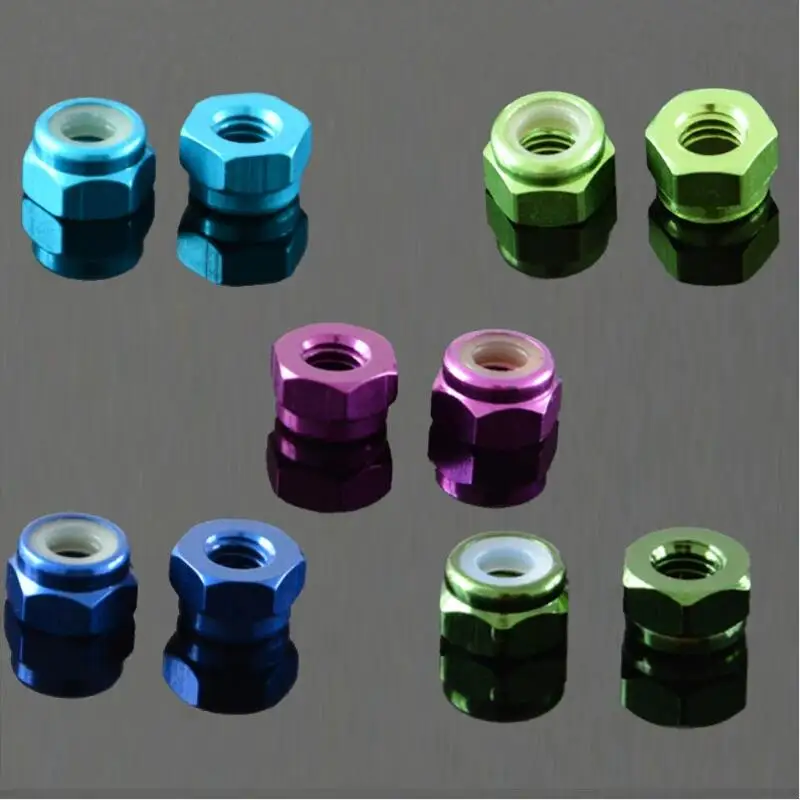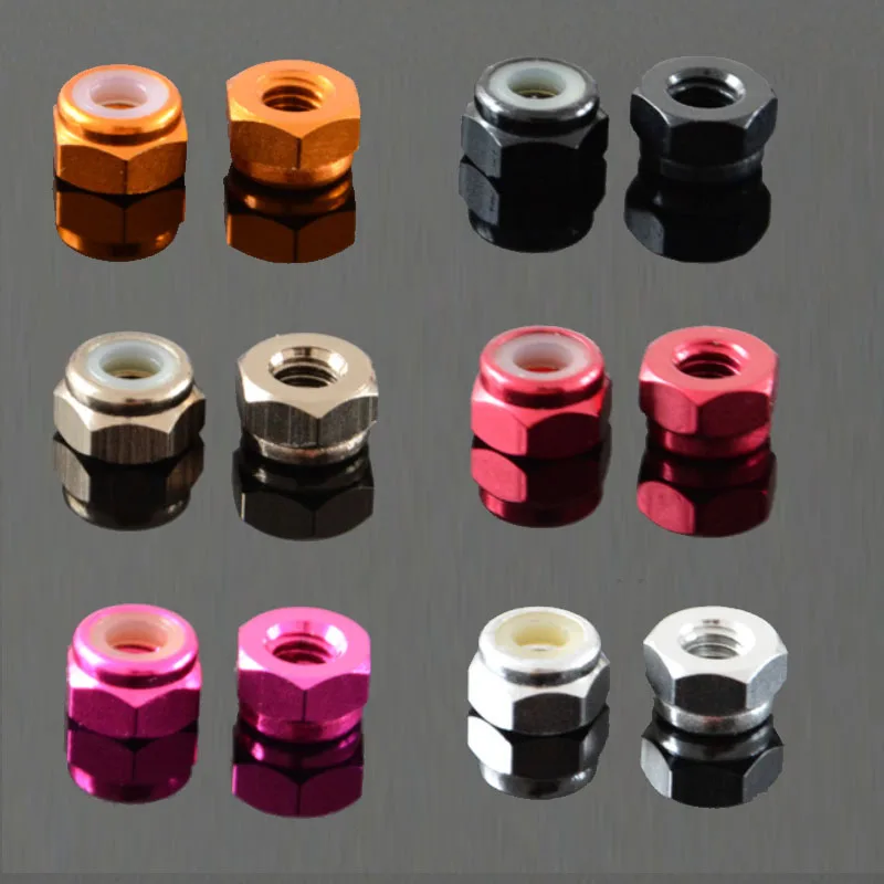 Discover the perfect combination of style and function with these colorful aluminum alloy lock nuts. Designed for enthusiasts who value quality and durability, this set includes ten distinct hues—gold, titanium grey, wine red, royal blue, peach, purple, black, green, sky blue, and silver—allowing you to customize your projects with vibrant precision. Crafted from lightweight yet robust aluminum alloy, each lock nut features a sleek hexagonal shape with a polished anodized finish that resists fading and corrosion. The central nylon insert provides a secure self-locking function, ensuring your assembly stays tight under stress. These versatile nuts are ideal for aviation models, toy projects, bicycle accessories, and remote control vehicles, offering both aesthetic appeal and reliable performance for adult hobbyists and do-it-yourself enthusiasts.