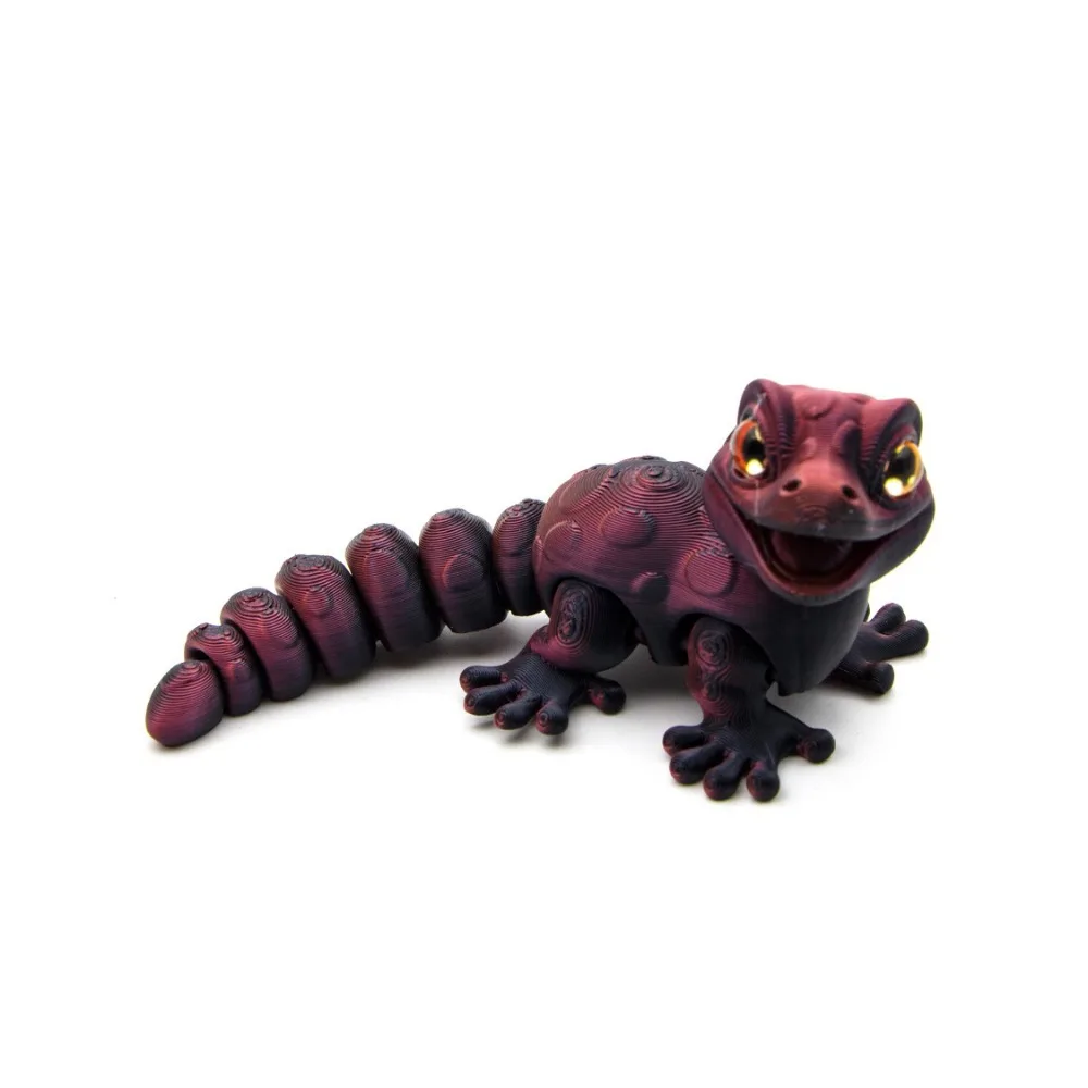 Imagine adding a splash of color and playfulness to your space with this lively, multi-colored animal figurine. Crafted from durable, non-toxic PLA material, it measures approximately 10.5 cm long, 5 cm wide, and 4.3 cm tall, making it perfect for display or stress relief. Its glossy finish and textured ridges along the back and tail highlight its dynamic design, while the large, expressive eyes and cheerful, cartoonish smile give it an adorable, inviting charm. The flexible, articulated joints allow you to pose the figure in various positions, making it an engaging tactile experience. Whether used as decor, a collectible, or a stress-relief toy, this figurine adds personality and vibrancy to any environment.