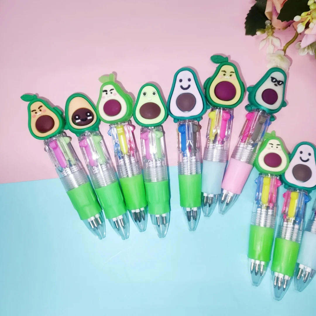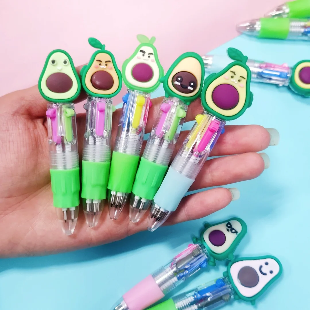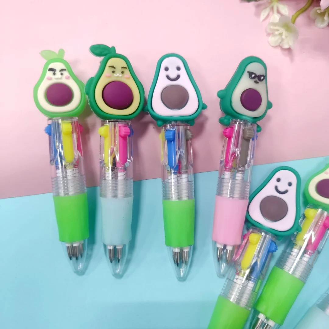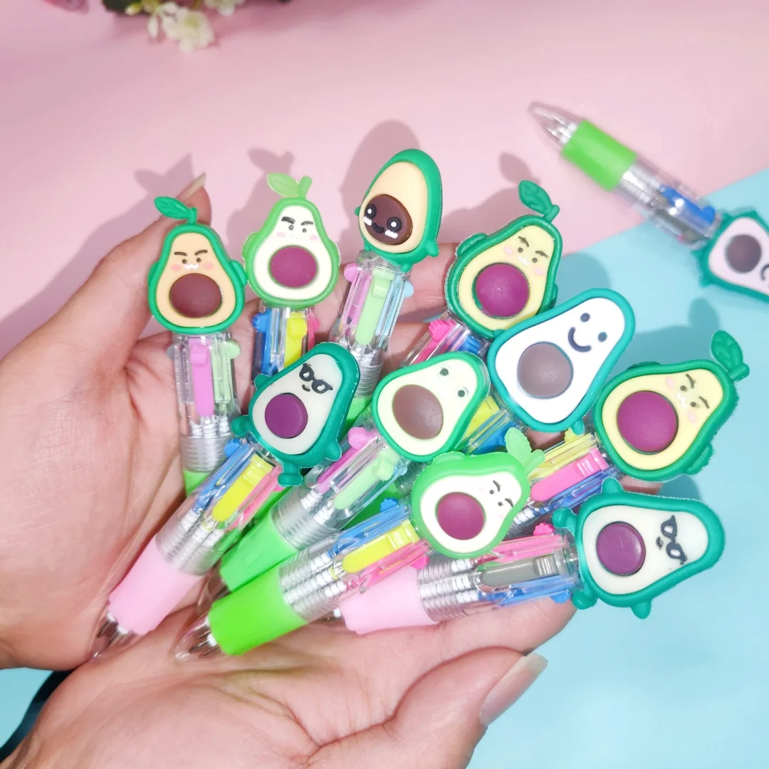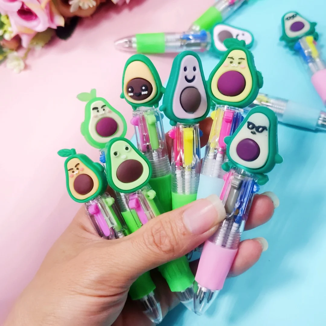 Enhance your writing experience with this set of five mini ballpoint pens, each approximately 10 cm long and weighing 11.6 grams. Crafted from durable plastic and silicone, these pens feature playful avocado cartoon toppers with expressive facial features, in four delightful color variations, including pastel pink, yellow, purple, and green accents. The transparent bodies reveal the internal mechanisms, complementing the vibrant, whimsical design. With a smooth 0.7 mm writing point, they are perfect for office or school use and serve as charming stationery gifts or supplies. Non-erasable and chemical-free, these pens combine fun aesthetics with reliable functionality.