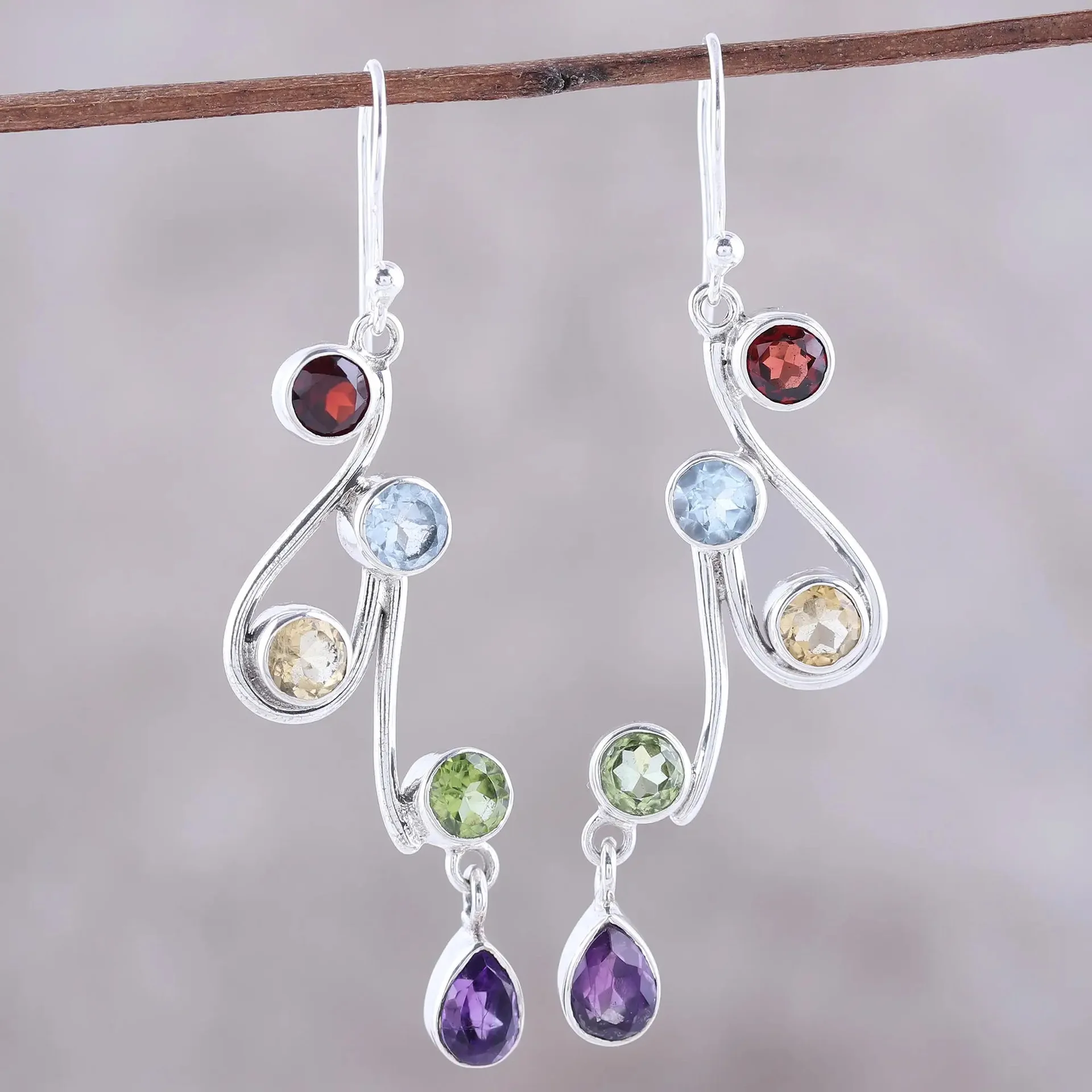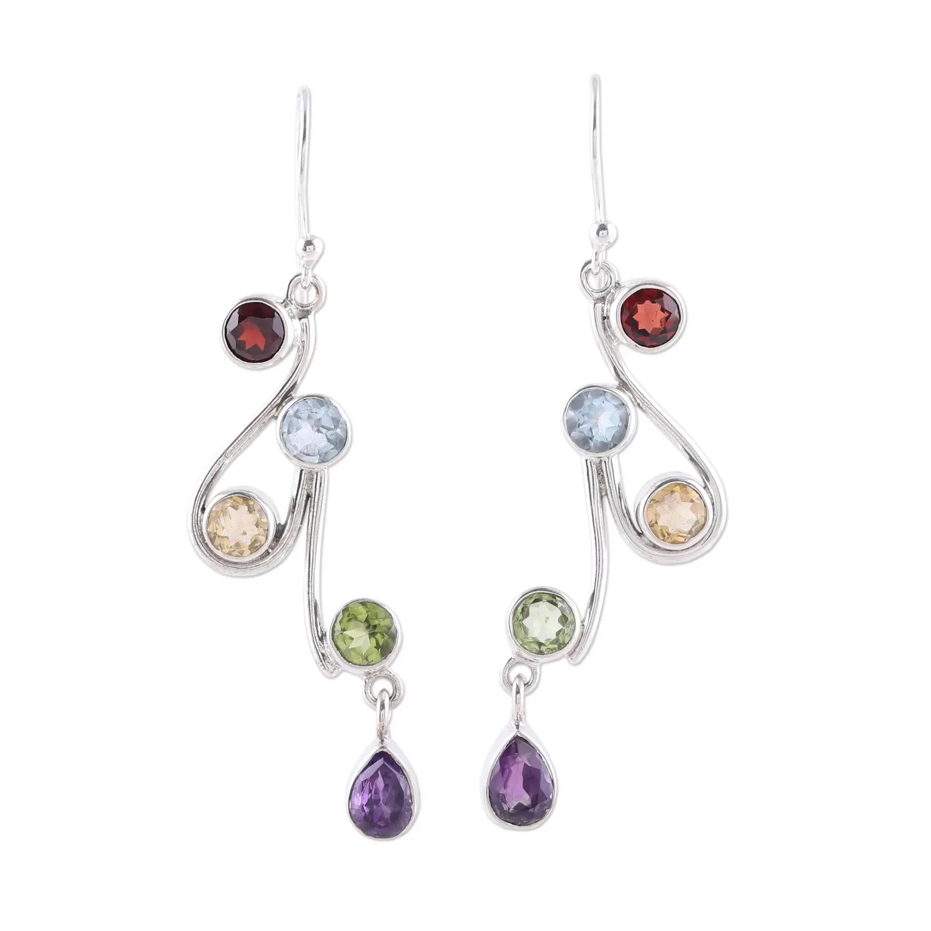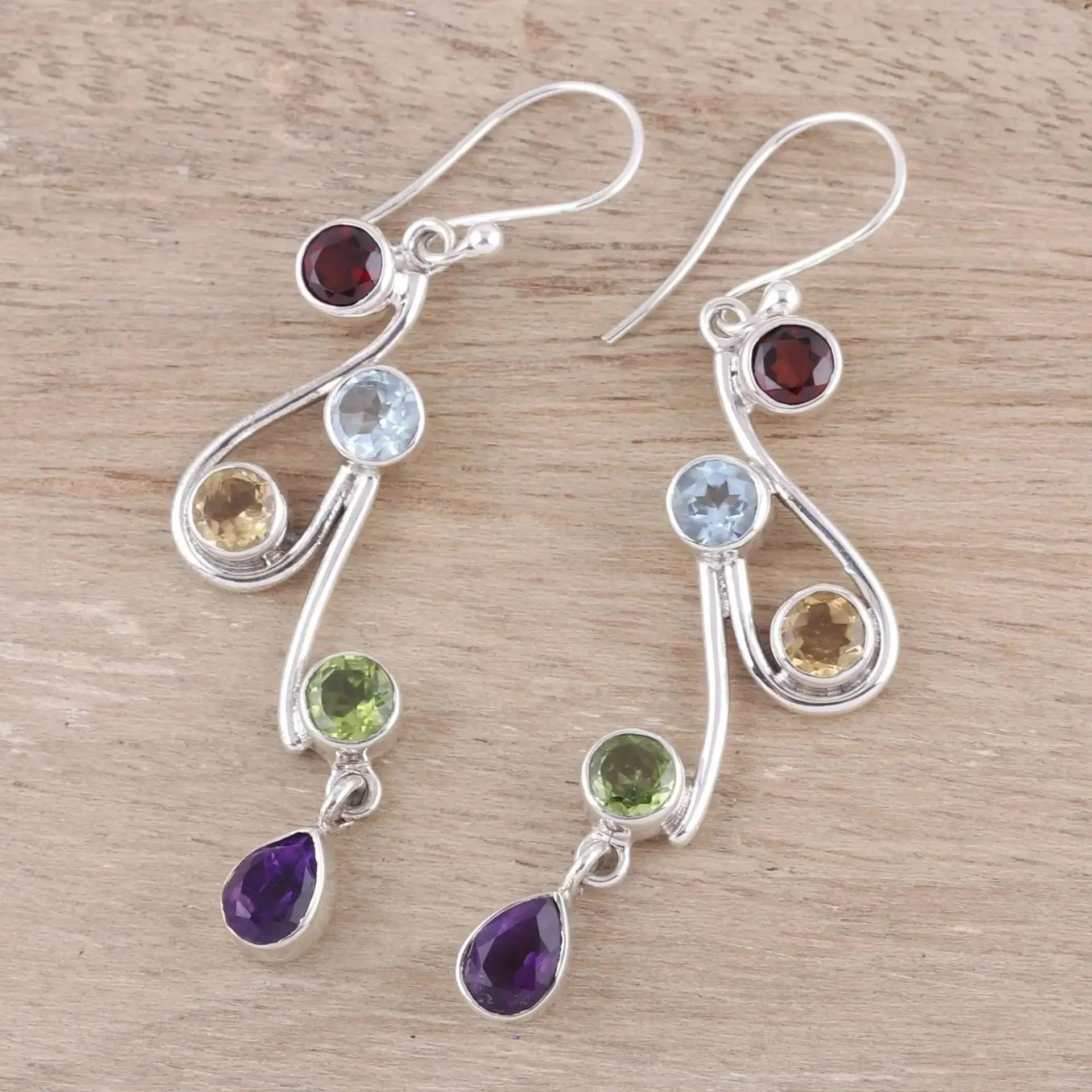 Experience the vibrant charm of these colorful bohemian drop earrings that effortlessly elevate your style for special occasions or everyday wear. Crafted from Tibetan silver and copper alloy, each earring features a sleek, curved shape inspired by nature, resembling plant or vine patterns. Adorned with faceted cubic zirconia stones in bold hues—red, light blue, yellow-golden, green, and purple—they catch the light beautifully, adding a lively splash of color. The design culminates in a larger teardrop-shaped purple stone that dangles freely, creating elegant movement and visual interest. Perfect for weddings, parties, or as a thoughtful gift, these earrings combine artistic craftsmanship with playful aesthetics to suit your unique style and personality.