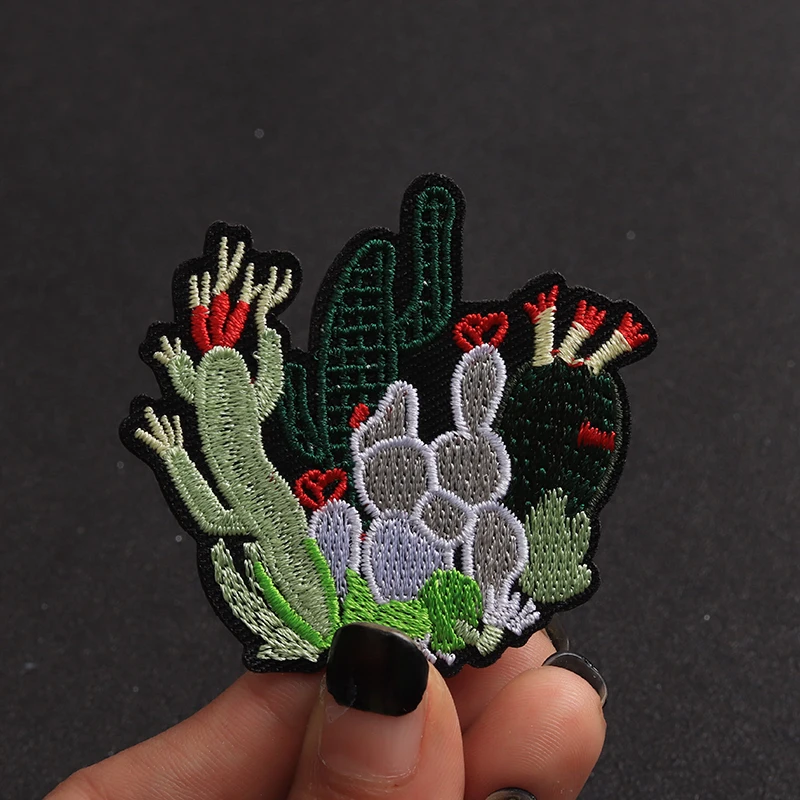 - Five charming embroidered patches featuring cacti designs.