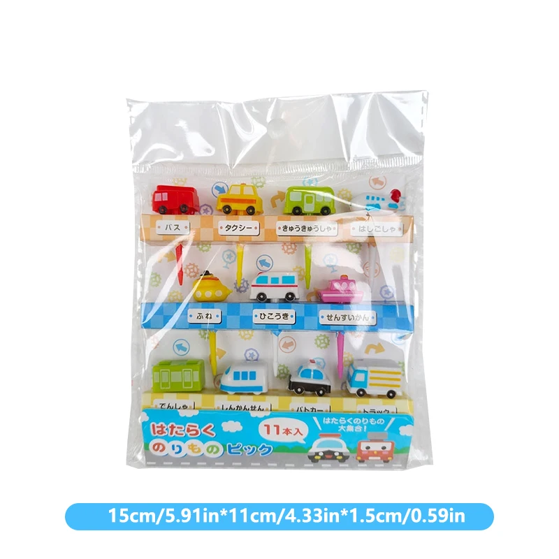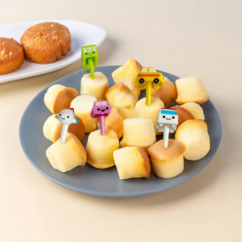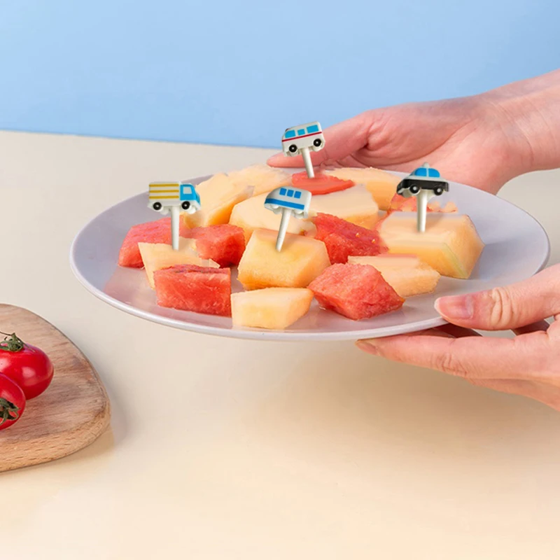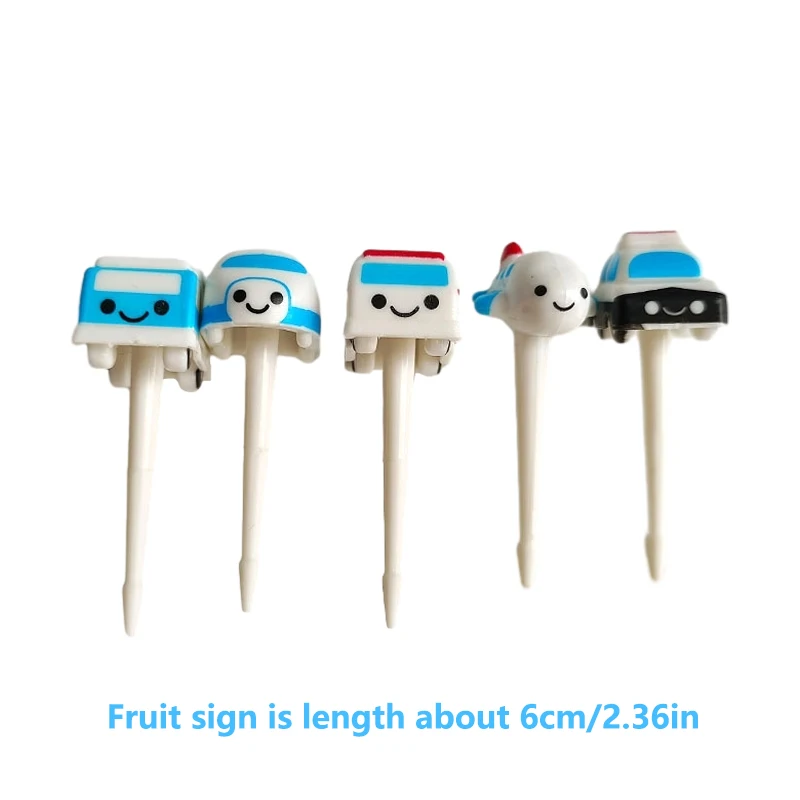 Imagine adding a burst of color and fun to your child's mealtime with this delightful set of cartoon vehicle food picks. Crafted from child-safe plastic, each pick features a charming mini car, truck, or airplane at the top, rendered in bright hues like blue, green, yellow, red, pink, and white. Available in sets of 6 or 11 pieces, the picks come in three lengths—6 cm, 8 cm, and 10 cm—that make serving fruits, cheese, mini sandwiches, and sliced meats both playful and convenient. Their adorable, rounded design is designed to appeal to children, encouraging healthy eating habits while brightening up any table or snack presentation. Perfect for parties, home use, or gifts, they promise safety, durability, and endless fun during mealtimes.