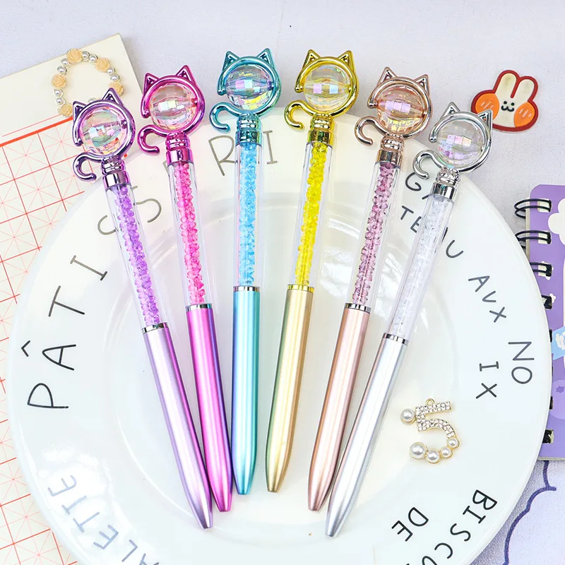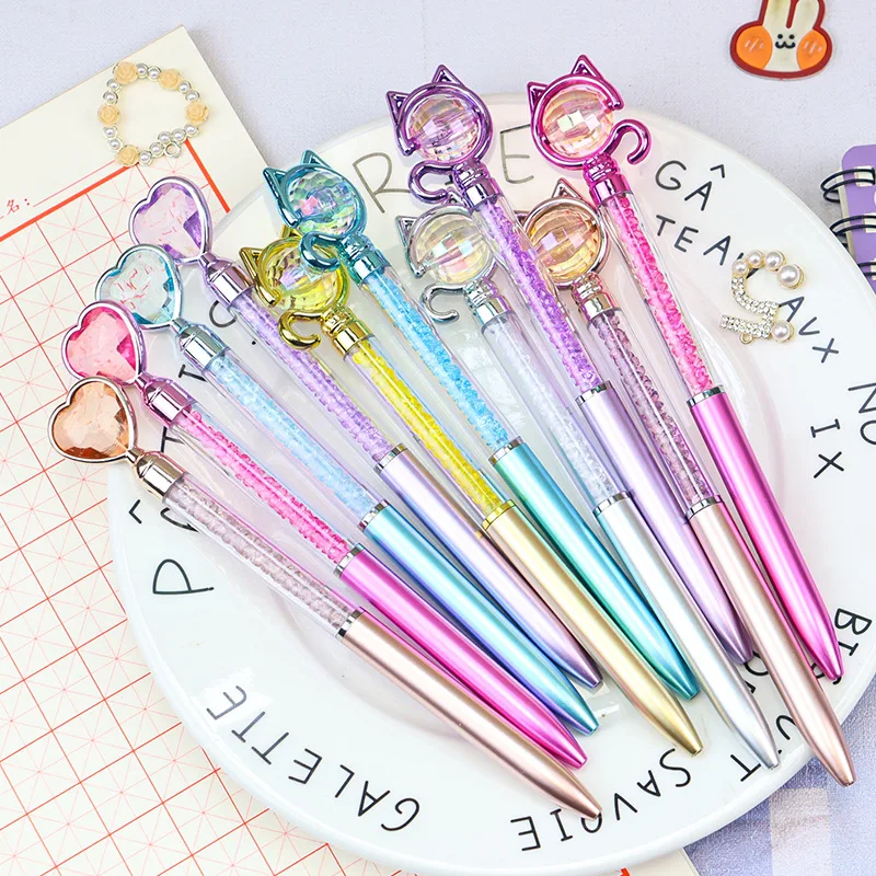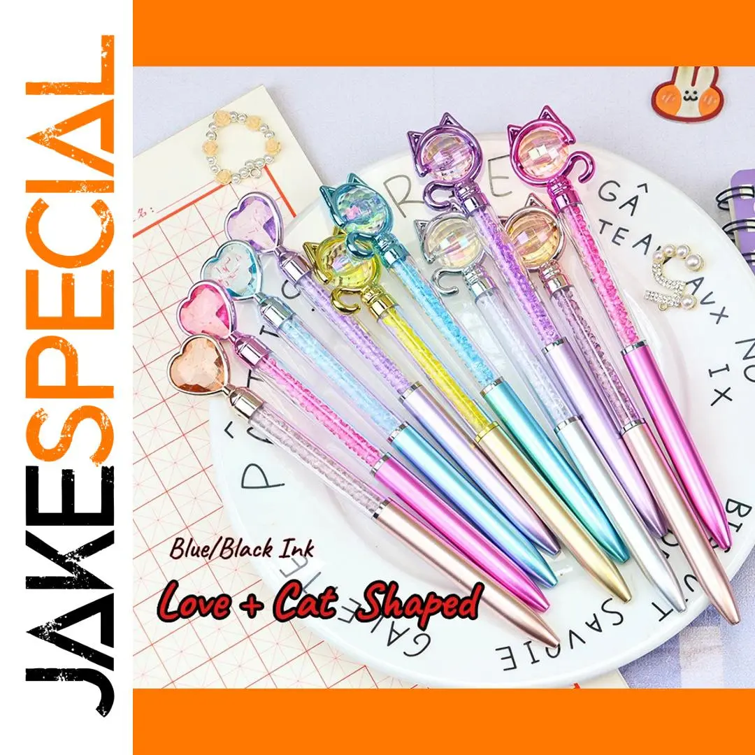 Add a touch of playful elegance to your writing with this set of 10 colorful rotating ballpoint pens, each measuring 17 cm in length and weighing approximately 12 grams. Crafted from durable plastic, these pens feature a sleek, transparent barrel revealing glittery or textured inner designs that match their vibrant pastel and bright color themes of cats, love, or both. The 0.7mm blue or black ink provides smooth, consistent lines, while the rotating mechanism allows for easy use and stylish presentation. Perfect for office or school, these charming, lightweight pens combine functionality with a cute, youthful aesthetic for an enjoyable writing experience.