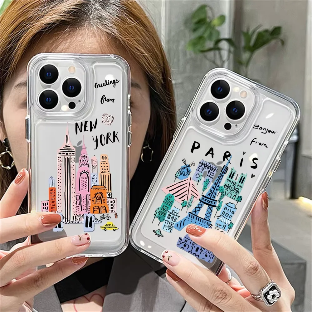 Imagine your iPhone adorned with this lively and playful cityscape phone case, instantly elevating its style and personality. Featuring colorful illustrations of Paris and New York City in a charming cartoon aesthetic, these cases bring a bright, cheerful vibe to your device. The semi-wrapped design offers a perfect balance between protection and accessibility, showcasing vibrant pastel shades of blue, pink, green, orange, and black. With a glossy finish that enhances every detailed line, our cases make your phone stand out with a pop of color and urban charm. Feel confident knowing your device combines style, durability, and a unique artistic touch, making it easy to express your love for travel and iconic cityscapes daily.