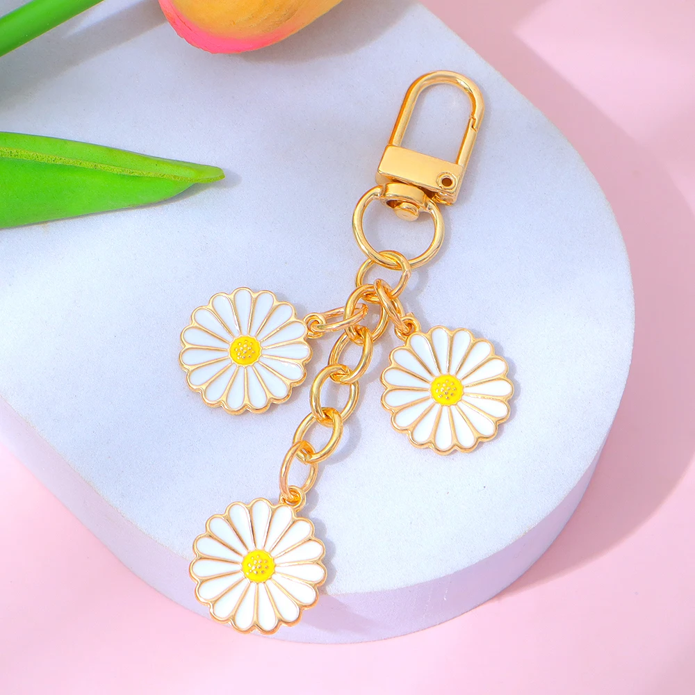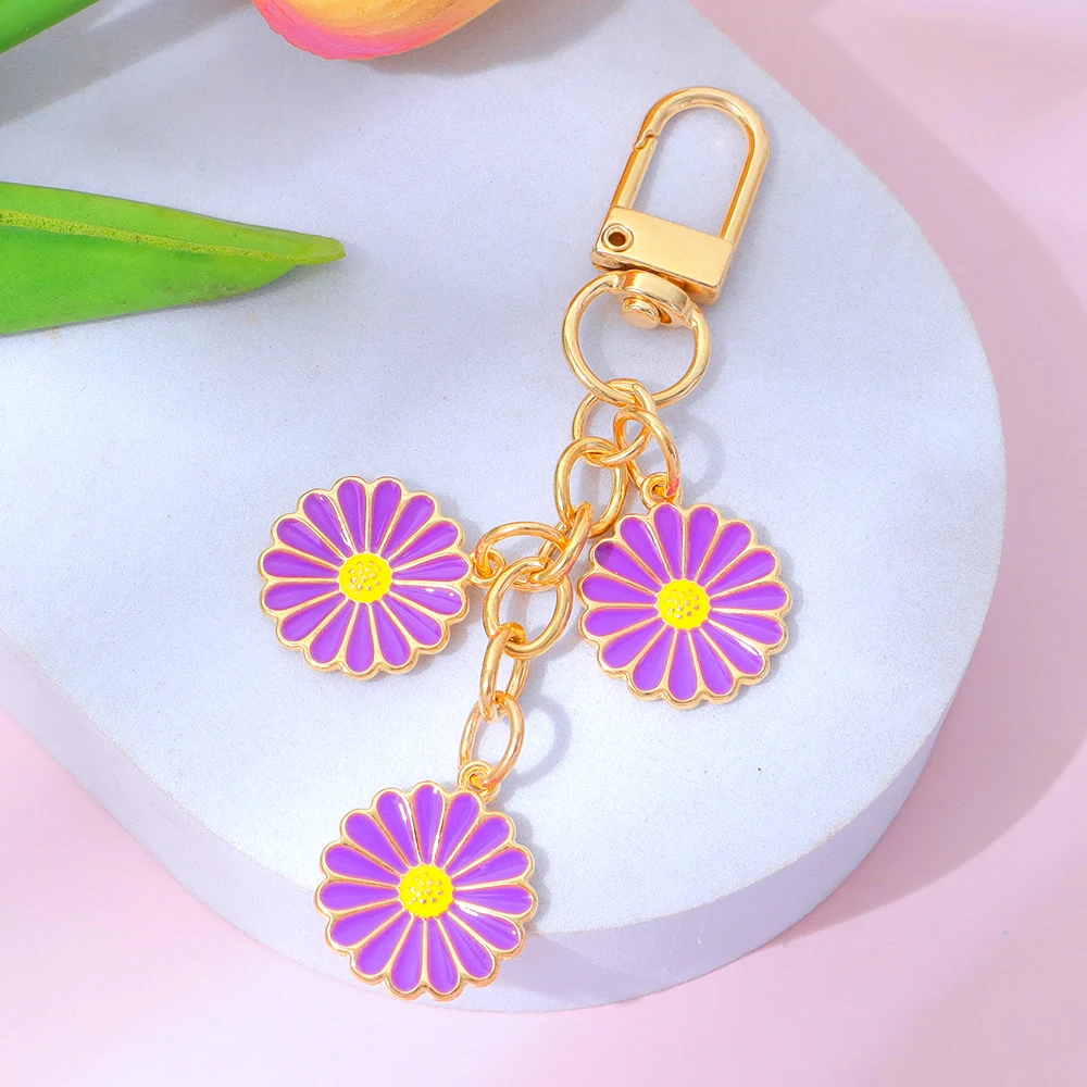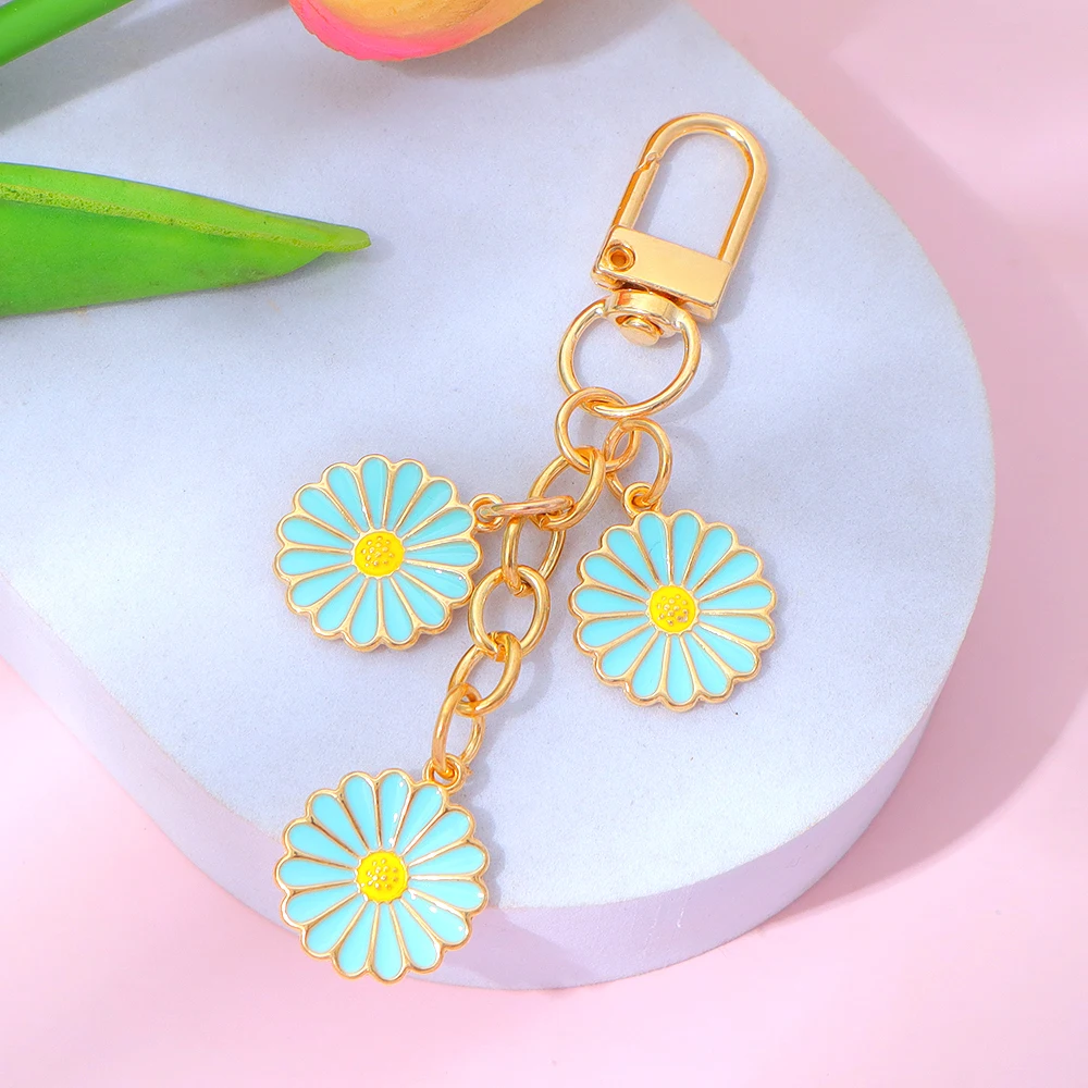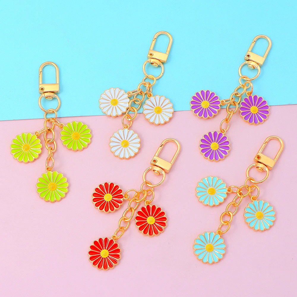 Discover this delightful, colorful Daisy metal keychain that effortlessly elevates your accessories collection. Crafted from zinc alloy with a shiny gold finish, this keychain features vivid enamel-coated daisy flowers in seven lively colors. Each flower showcases rounded petals with a yellow or rhinestone center, creating a cheerful, trendy look. Its D-shaped buckle ensures easy attachment to bags, keys, or accessories, blending style and practicality seamlessly. Whether used as a bag charm, a thoughtful gift, or a vibrant accessory for any occasion, this keychain’s playful design draws attention and smiles. Its durable material guarantees long-lasting beauty, making it an ideal addition for trend-conscious individuals seeking a fun, colorful flair.