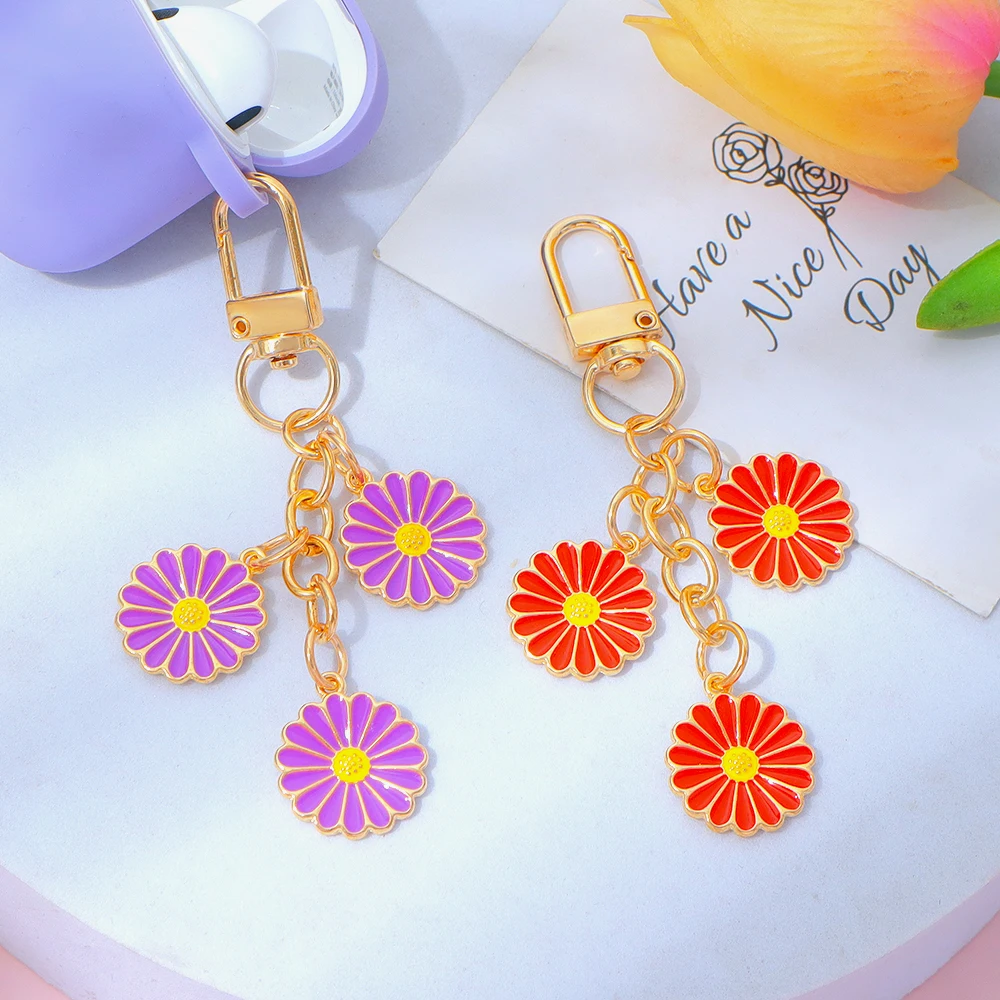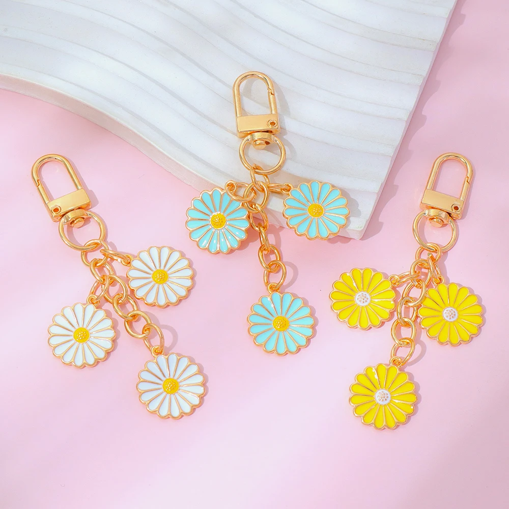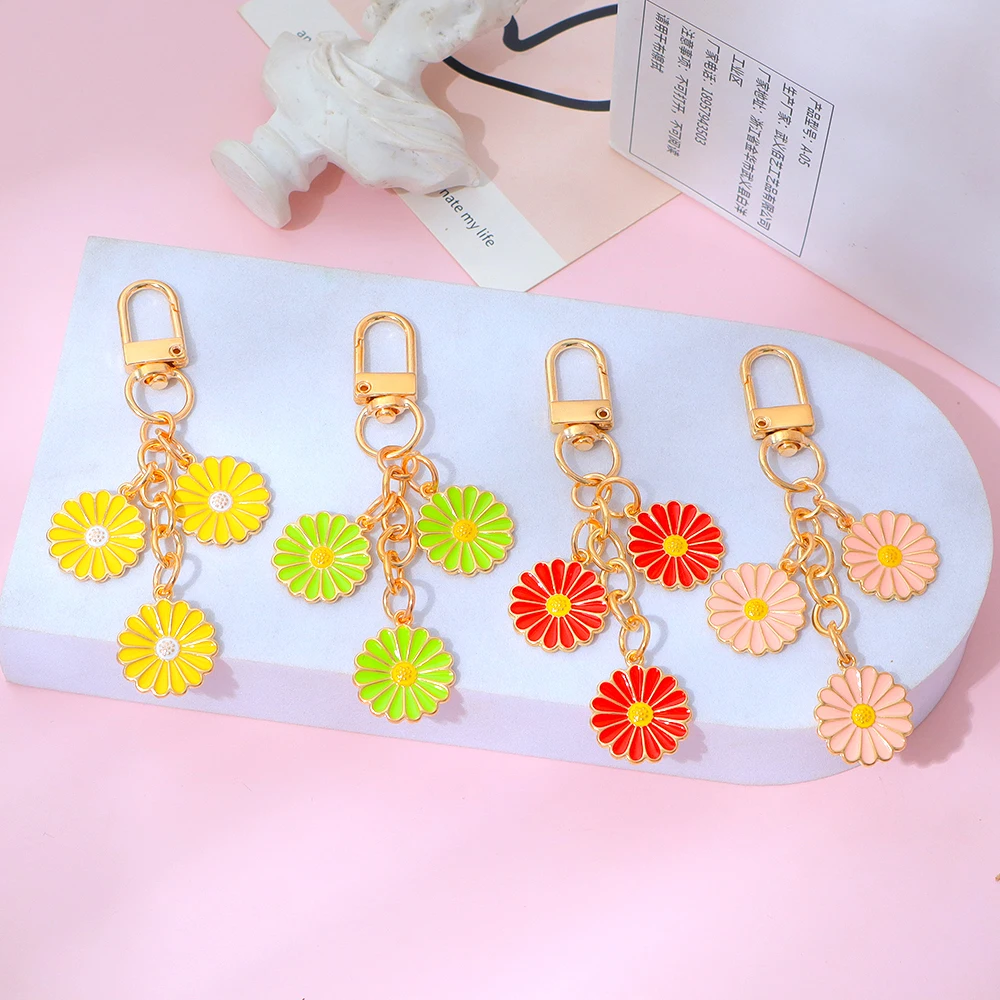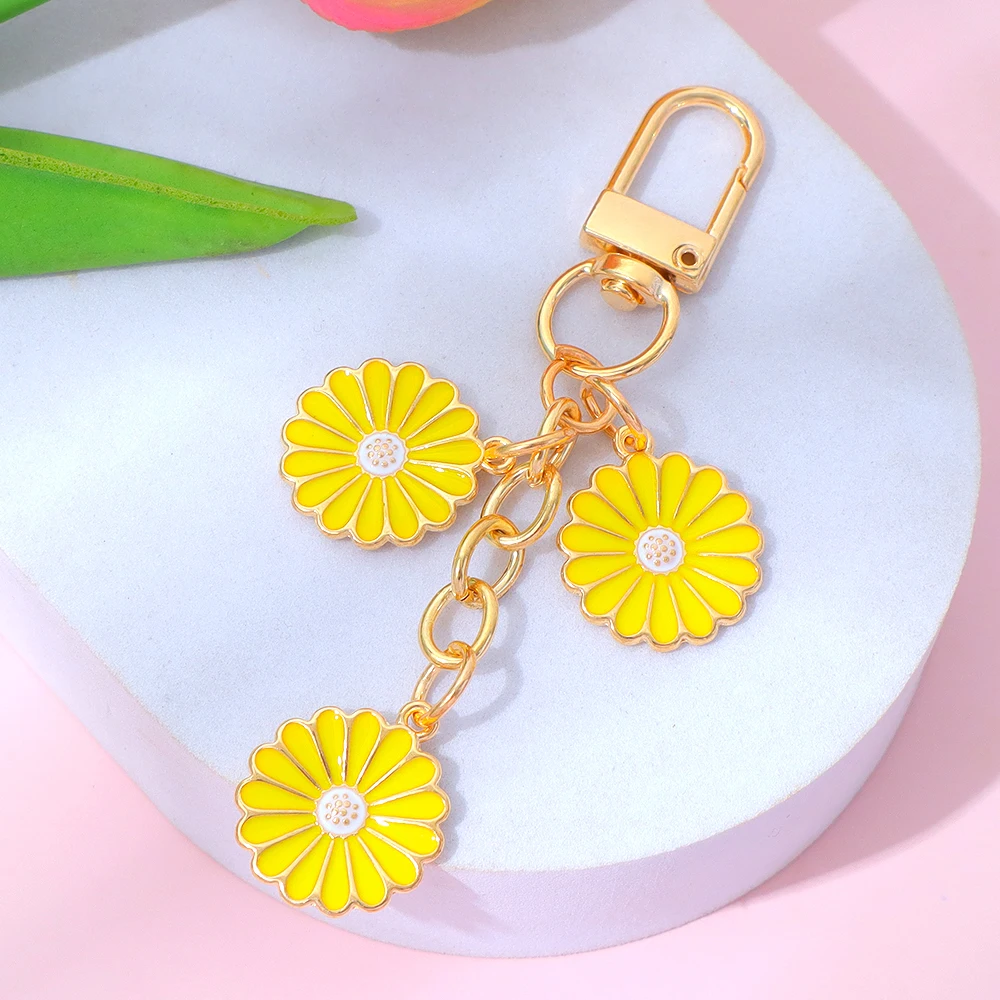 Discover this delightful, colorful Daisy metal keychain that effortlessly elevates your accessories collection. Crafted from zinc alloy with a shiny gold finish, this keychain features vivid enamel-coated daisy flowers in seven lively colors. Each flower showcases rounded petals with a yellow or rhinestone center, creating a cheerful, trendy look. Its D-shaped buckle ensures easy attachment to bags, keys, or accessories, blending style and practicality seamlessly. Whether used as a bag charm, a thoughtful gift, or a vibrant accessory for any occasion, this keychain’s playful design draws attention and smiles. Its durable material guarantees long-lasting beauty, making it an ideal addition for trend-conscious individuals seeking a fun, colorful flair.