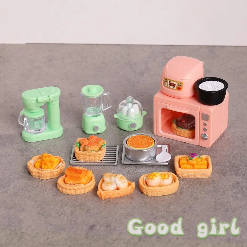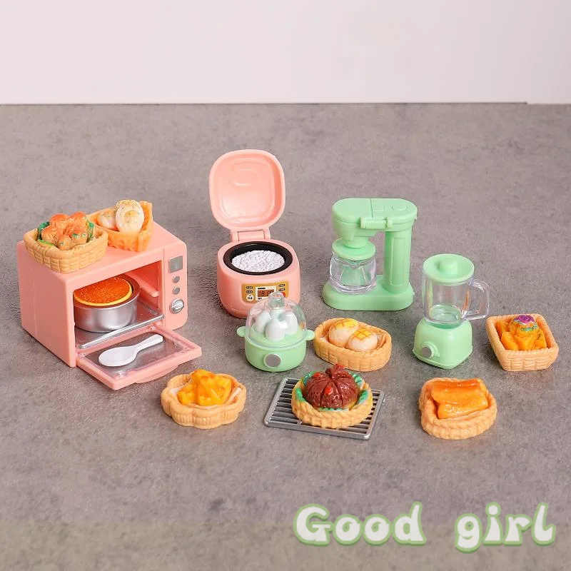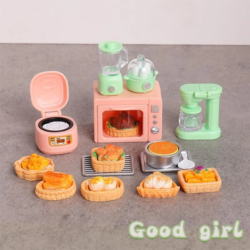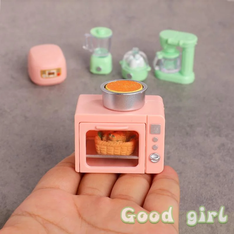 Bring a playful and colorful touch to your dollhouse with this miniature food set, featuring a plastic electronic oven and rice cooker, both designed at a 1/12 scale. Included is a realistic pretend bread accessory, perfect for enhancing your dollhouse kitchen scene. Made from durable plastic, this set is ideal for ages 6 to 12 and adds a lively, child-friendly aesthetic to any collection. Its bright, cheerful design showcases vibrant colors like pink, green, and orange, creating a whimsical cooking environment. Please note that it is a doll accessory set, not a toy for handling or consumption, and slight size variations may occur due to manufacturing processes.