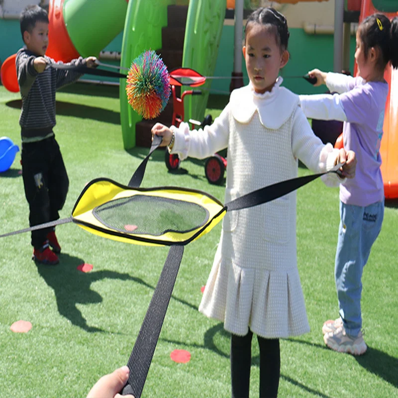 Enhance outdoor play and bonding with this vibrant Double Throwing Catching Parent-Child Interaction Toy, measuring 40x40x3 cm and crafted from safe polyester material. Designed for children aged 6-12, this colorful set features an umbrella-shaped canopy in bright red, decorated with multicolored pom-poms, supported by black straps for coordinated throwing and catching activities. Perfect for sensory integration training and developing physical intelligence, it promotes teamwork, coordination, and fun in outdoor environments. Available in green, yellow, blue, red, and a single ball option, this lightweight, chemical-free toy offers endless opportunities for active, engaging play that fosters sensory and motor skills.