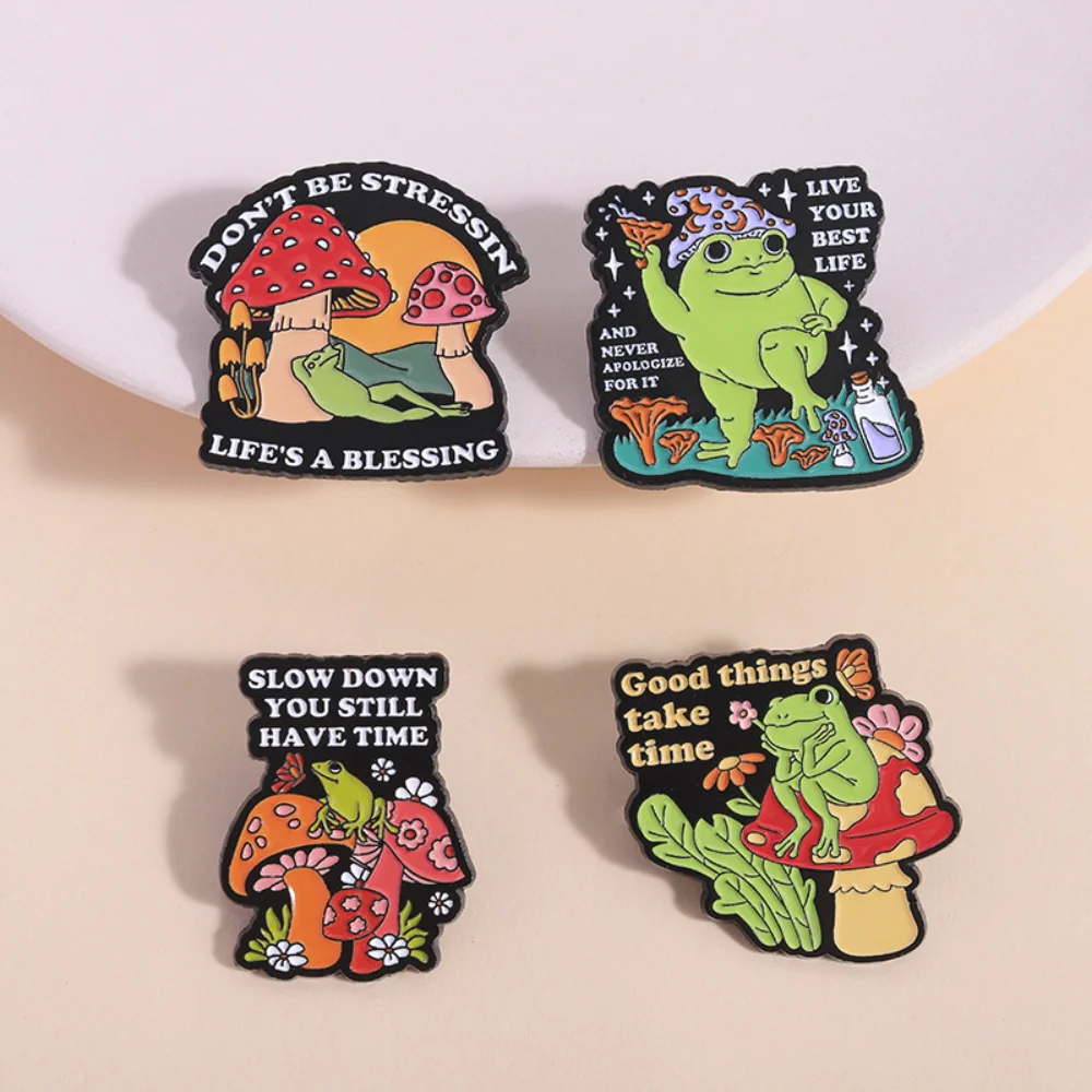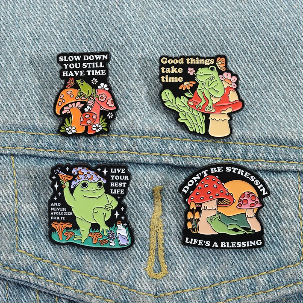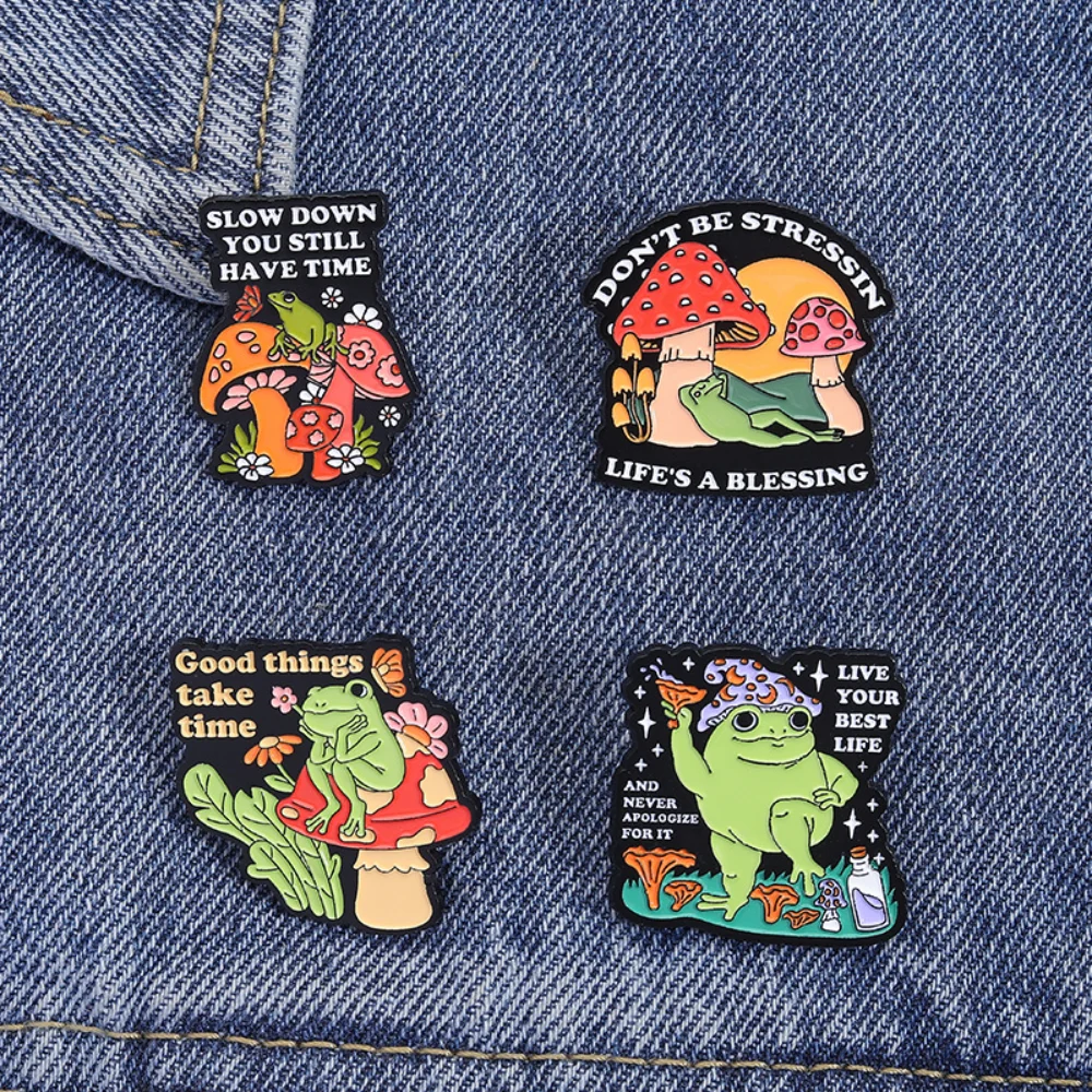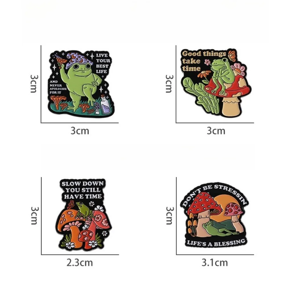 Transform your attire with this vibrant alloy badge featuring a playful cartoon frog design, available in dark khaki, light grey, light yellow, and light green. Measuring as shown, this unisex accessory suits various styles from retro to minimalist, adding personality to jackets, backpacks, hats, or DIY projects. Crafted without high-concern chemicals, it offers durable quality with slight measurement variations of 1-3mm. Its bold, cheerful imagery captures a whimsical, positive vibe, making it the perfect statement piece for those who enjoy expressing their individuality with fun, stylish accessories. Customize your look and showcase your unique style effortlessly.