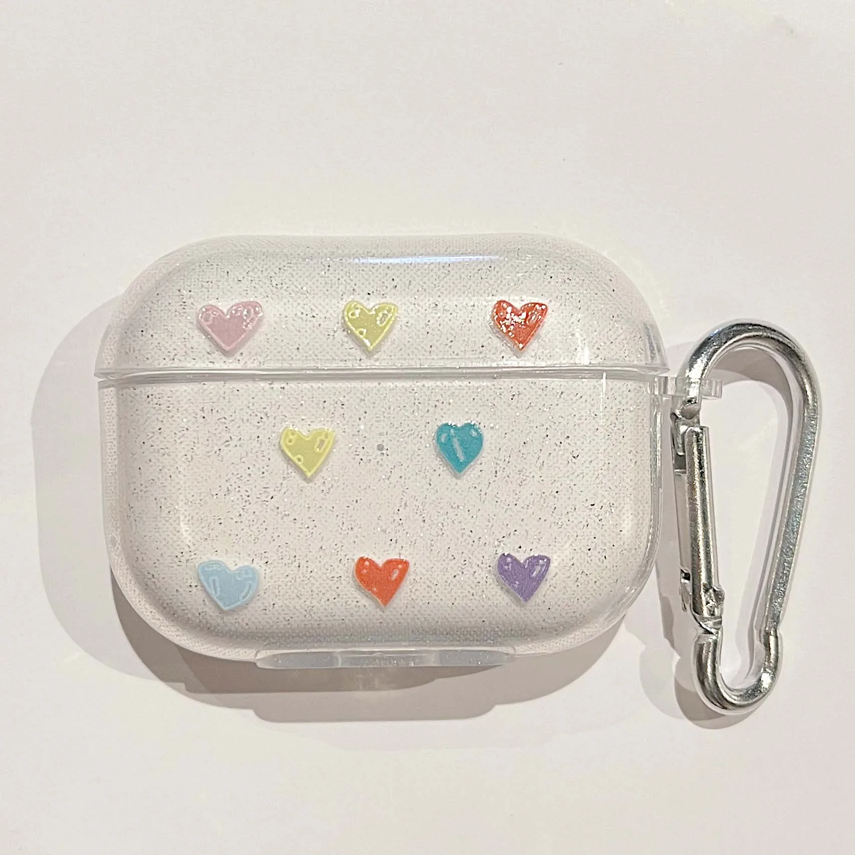 Experience a vibrant transformation for your AirPods with this playful, colorful case designed exclusively for AirPods 1 & 2, AirPods 3 (2021), and AirPods Pro 2nd generation. Crafted from non-toxic silicone, it offers robust protection from scratches, dust, and dirt while adding a fun, youthful touch. The glittery cartoon patterns with pastel shapes, smiley faces, and hearts reflect a lively aesthetic, perfect for expressing your personality. Its lightweight construction ensures effortless portability, and its precise fit guarantees easy access and secure coverage. Easy to put on and take off, this case turns your everyday accessory into a unique fashion statement, making your AirPods stand out with color and sparkle.