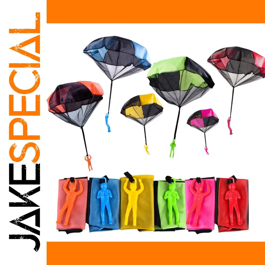 - Includes six vibrant parachutes in blue, green, red, orange, yellow, and pink, all made from lightweight, semi-translucent fabric with black mesh panels for visual appeal.