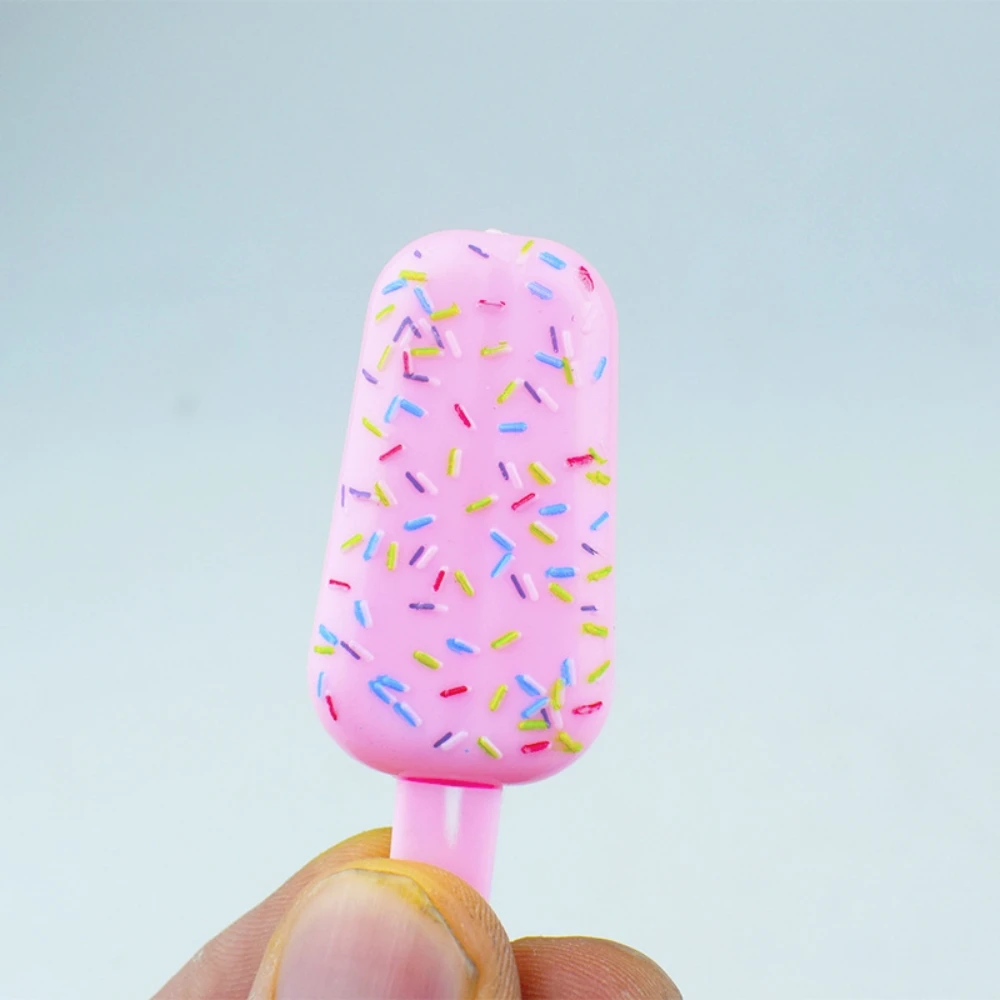Imagine adding a splash of color and playfulness to your event with these vibrant ice cream-shaped pens. Designed to resemble miniature ice cream bars with rounded rectangular shapes, each pen features a glossy surface decorated with multicolored sprinkles on top. The pastel hues of yellow, white, pink, purple, and blue make them visually appealing and perfect for festive occasions. These pens are crafted from durable, chemical-free plastic, ensuring safety and longevity. Measuring approximately 4.9 cm each, they fit comfortably in your hand, adding a whimsical touch to any celebration or gathering. Whether used as party favors, prizes, or decorative items, these pens foster a fun, youthful atmosphere sure to delight guests.