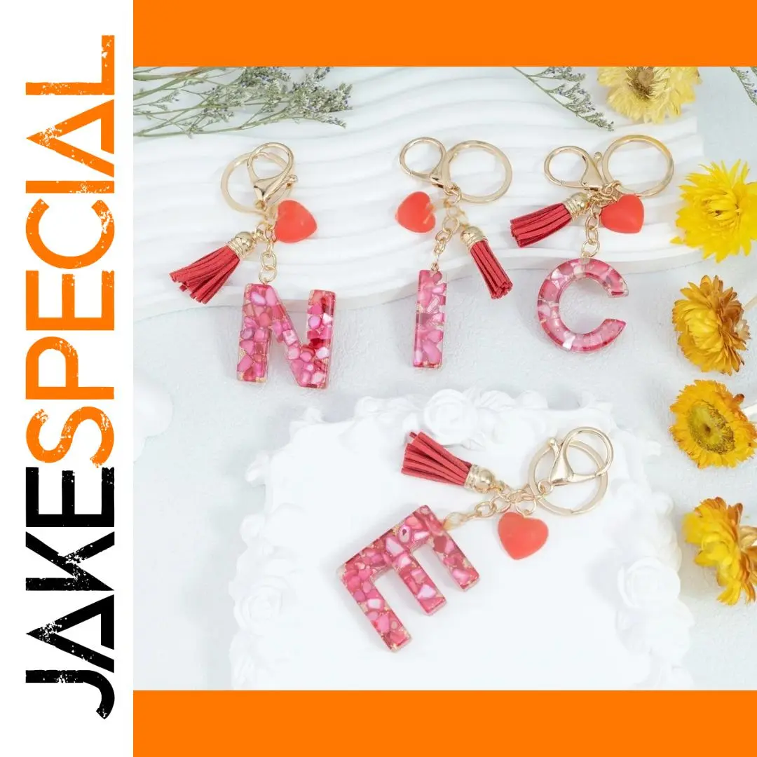 Elevate your accessories with this vibrant, fashionable keychain that combines playful design and durability. Crafted from zinc alloy and resin, it features glossy, smooth, and slightly thick letters embedded with floral and abstract patterns in pink, white, and purple. Bright red resin hearts and tiny red tassels with gold-tone caps add a fun, romantic touch, making it perfect for personal use or as a gift. Its lightweight yet sturdy construction ensures comfort and lasting appeal, suitable for accessorizing bags, wallets, or as a charming trinket. With an array of bright color options including red, pink, blue, gold, and multi, this keychain makes your everyday essentials uniquely stylish and personalized, adding a pop of color to any look.